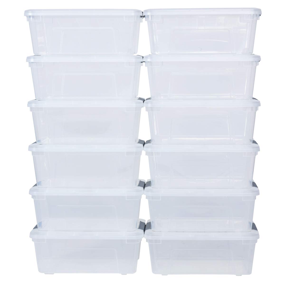 This is our Giantex high-quality plastic storage tote box which is an ideal containerfor organizing and storing small items in the closet. Transparent design makeyou easy to see stuff inside and is convenient for you to accurately findthings you want. Two grooves and built-in handle help you easily lift boxes orremove them from shelves. The transparent lid snaps firmly onto the base tokeep contents contained and secure. 12 PCS plastic storage tote boxes can be neatlystacked, which maximizes storage space. It will be worthy of purchasing for youand your family!