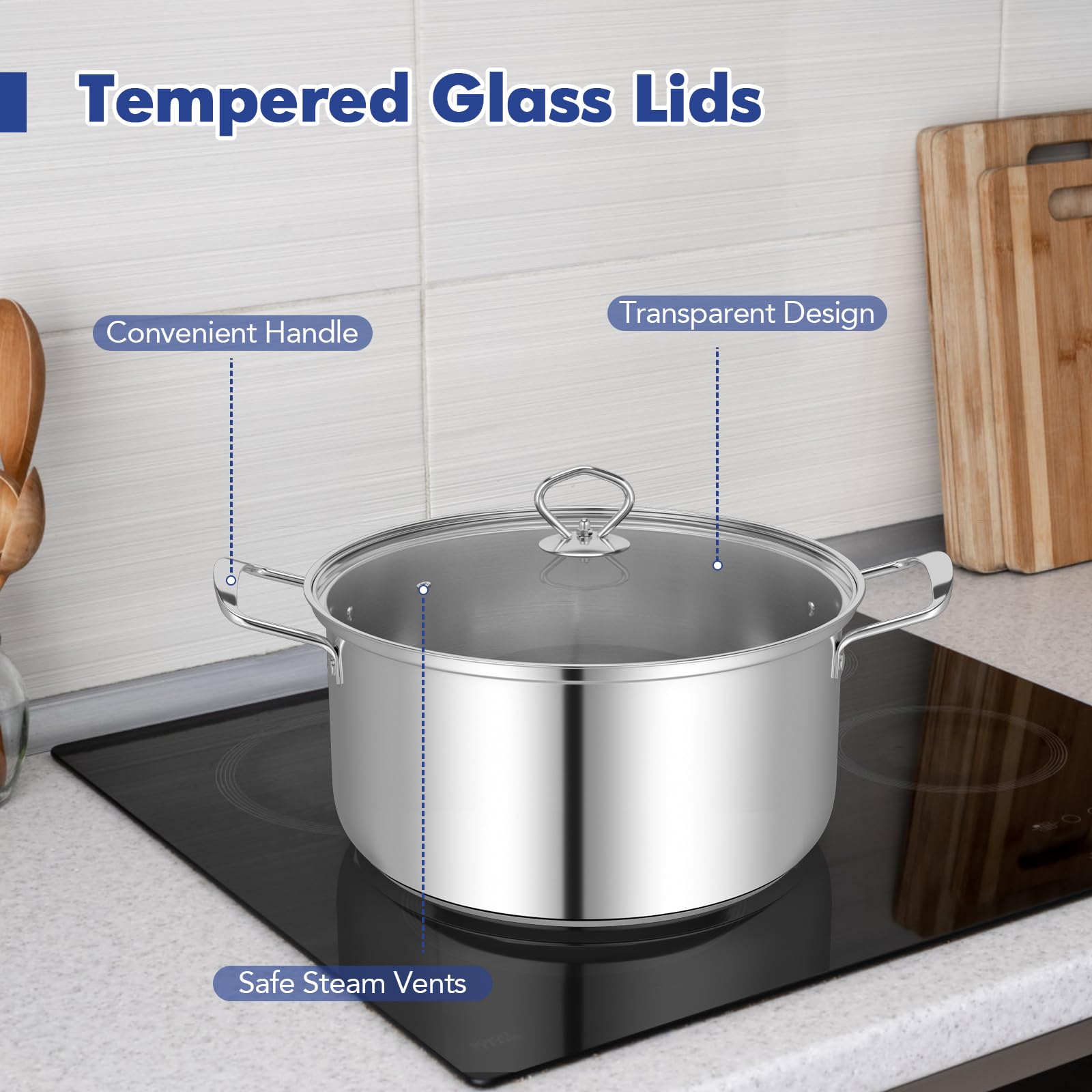 Tempered glass lids with a transparent design for easy observation