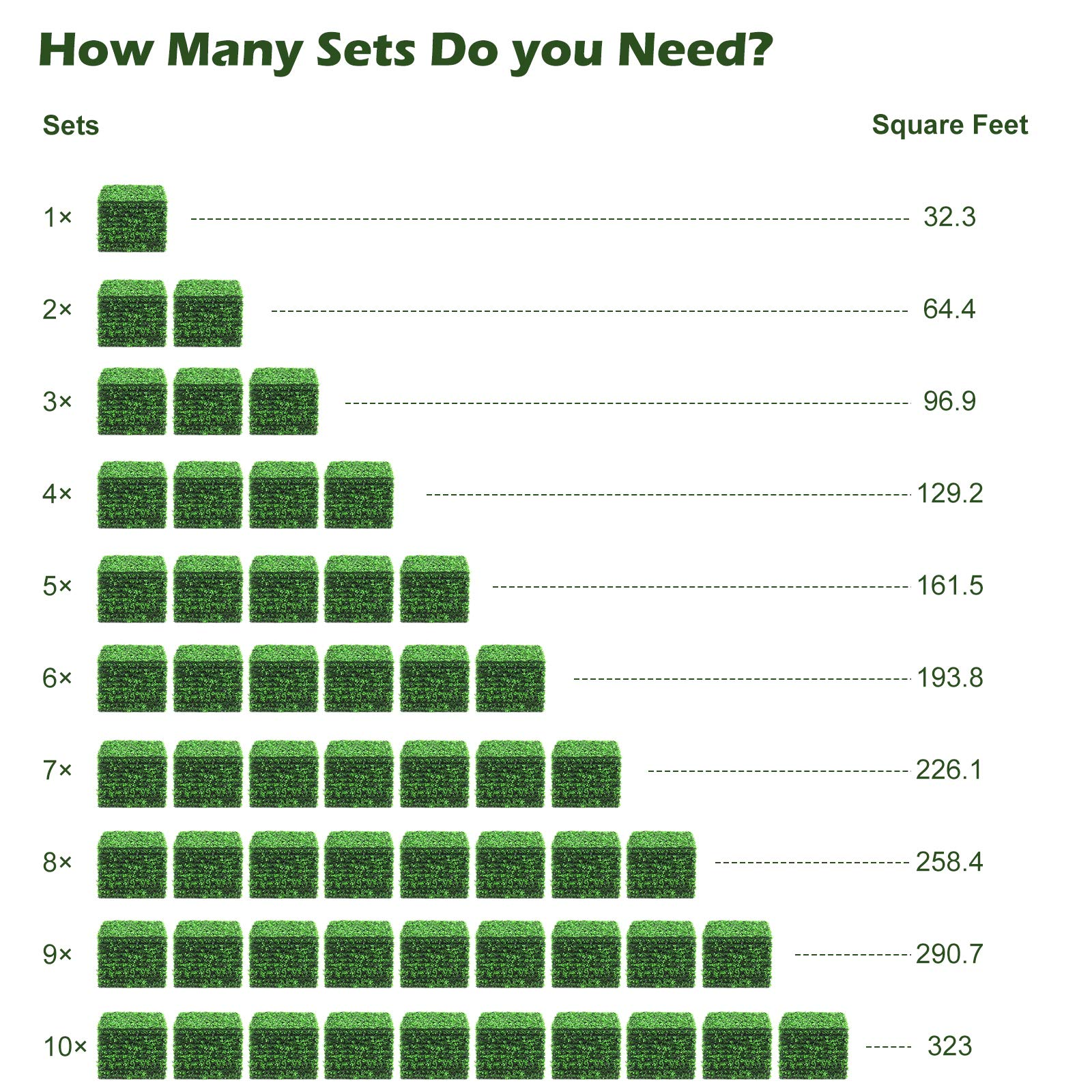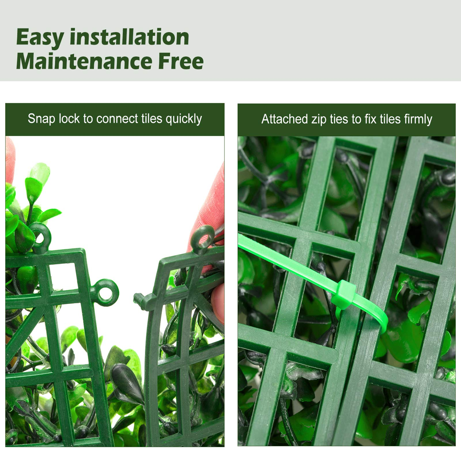 Our artificial peanut leaf panel will make your walls and fences become eye-catching decorations. The 12 tiles with 4-layer leaves at 1.5" high will add green and natural screen to your backyard fences. This PE artificial plant mat with SGS certification, so it can keep fresh appearance all year round. It takes only a few steps to complete the installation of the artificial lawn. The snap locks mechanism helps to connect different tile panels. You can use the zip tie to fix the artificial lawn on the fence. The artificial peanut leaf panel is suitable for different occasions including balcony, office, hotel, restaurant, wedding and so on, which is a cost-efficient way to beautify your space.