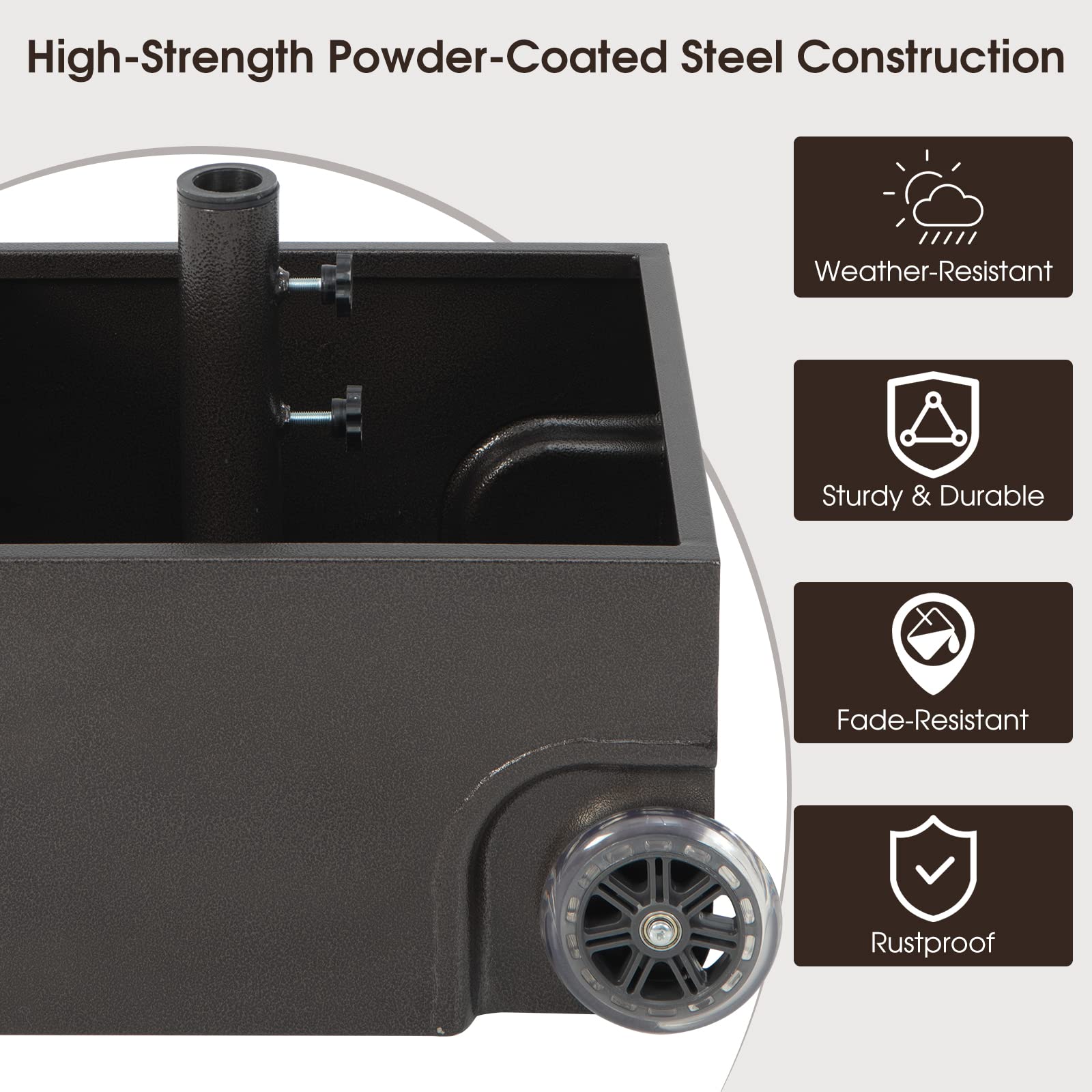 Giantex 150lbs Filled Umbrella Base with Wheels, Heavy Duty Umbrella Stand with Fillable Planter, Drainage Holes, Fit for 1.6''-2.1'' Pole