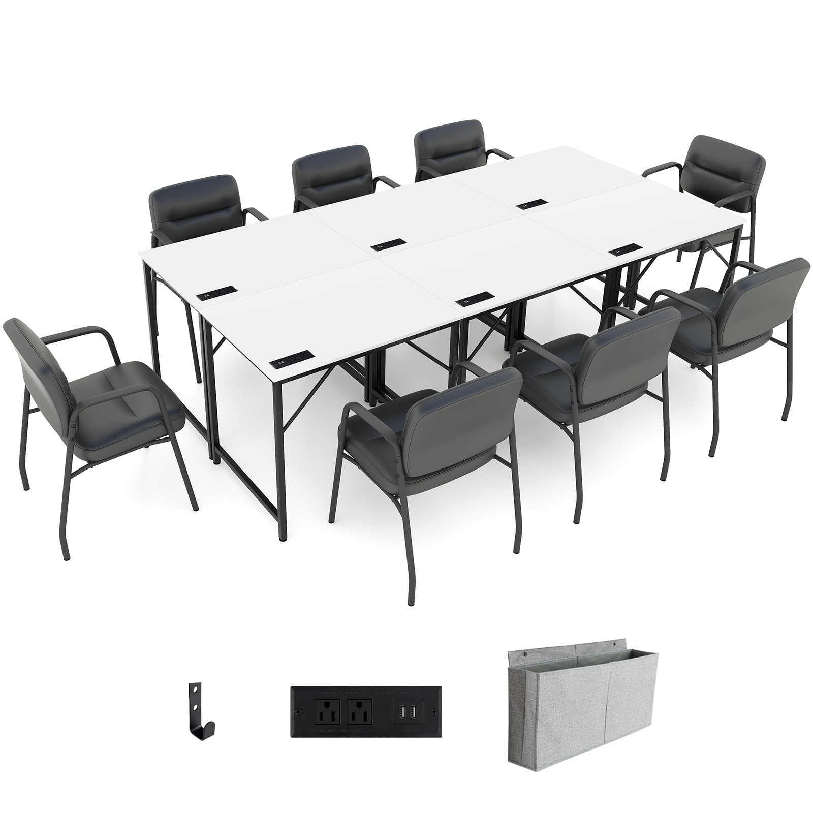 Giantex Conference Table with Charging Station, 2/4/6 PCS 32" x 24" Rectangular Meeting Room Desk with Storage Bag & Hook