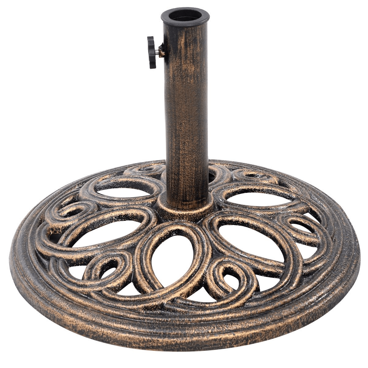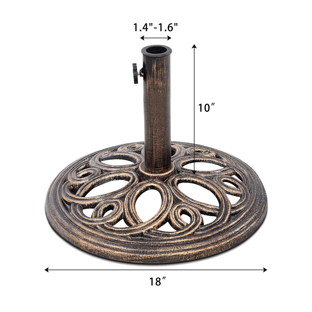 This Is Our 18" Round Diameter Umbrella Base, Which Is Ideal For Holding Your Umbrella Securely And Evenly In Place. It Is Really A Practical Addition To Your Backyard Or Your Patio Area. Includes A Coupler To Allow It To Fit 35mm To 40mm (By Removing The Adapter) In Diameter Umbrella Poles. Includes A Hand-Turn Knob For Securing Umbrella To The Base.