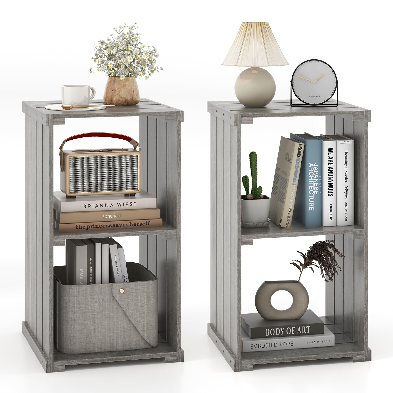 Constructed from robust paulownia wood, this storage unit is a perfect combination of elegance and stability. Ideal for organizing a variety of items, it boasts a spacious countertop and two open shelves, perfect for housing books, decorative items, or personal essentials. Its stylish slatted design and open back not only enhance the visual appeal but also introduce a rustic charm to any space. Versatile in use, it serves wonderfully as an end table, nightstand, or desktop shelf. This chic storage solution is a practical yet stylish addition to enhance your living environment.