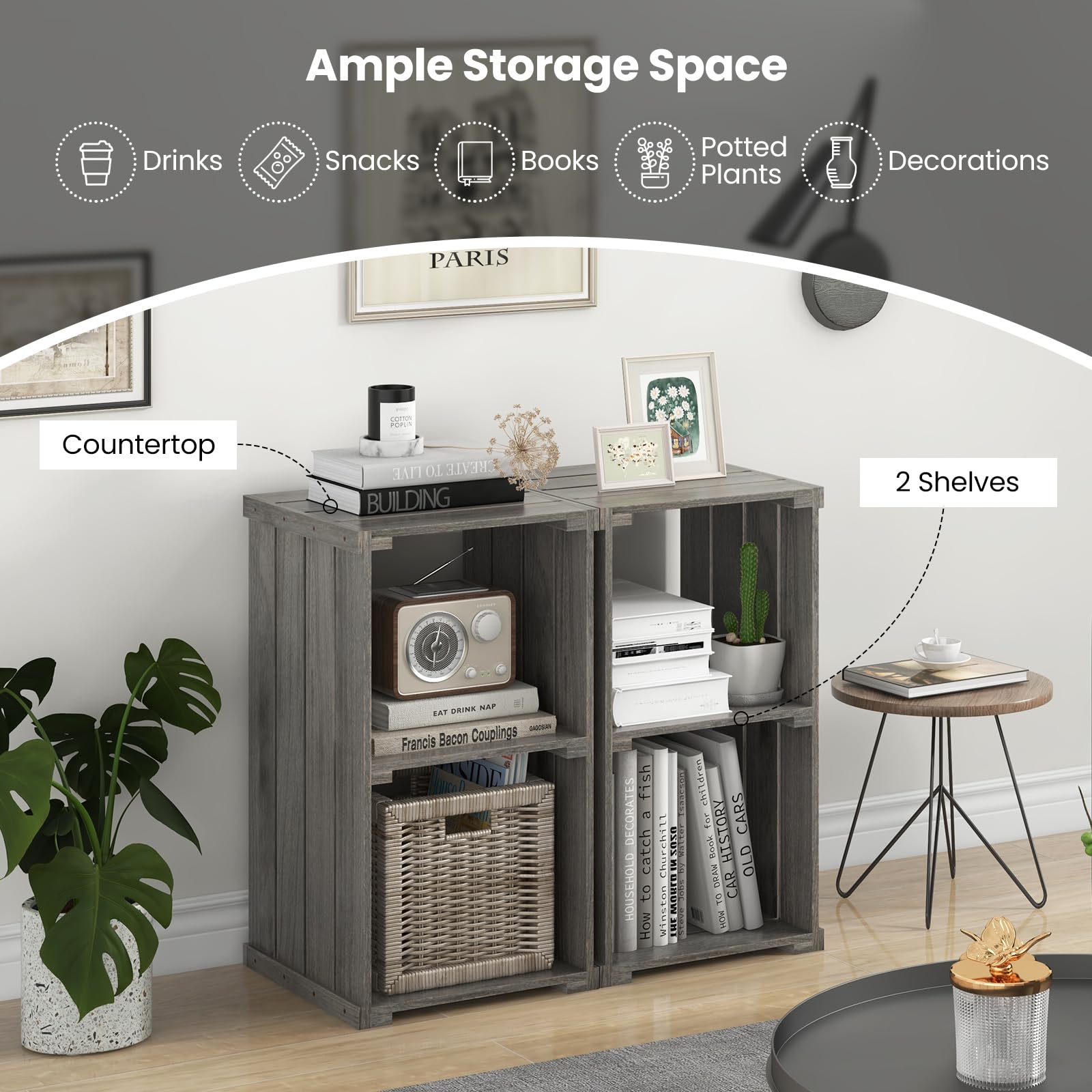 - [Perfect Indoor Addition]: Combining an appealing appearance with high functionality, this 2-cube shelf is perfect for study, living room, bedroom, and more. Its overall dimensions are 14.5" x 14" x 26" (L x W x H).
