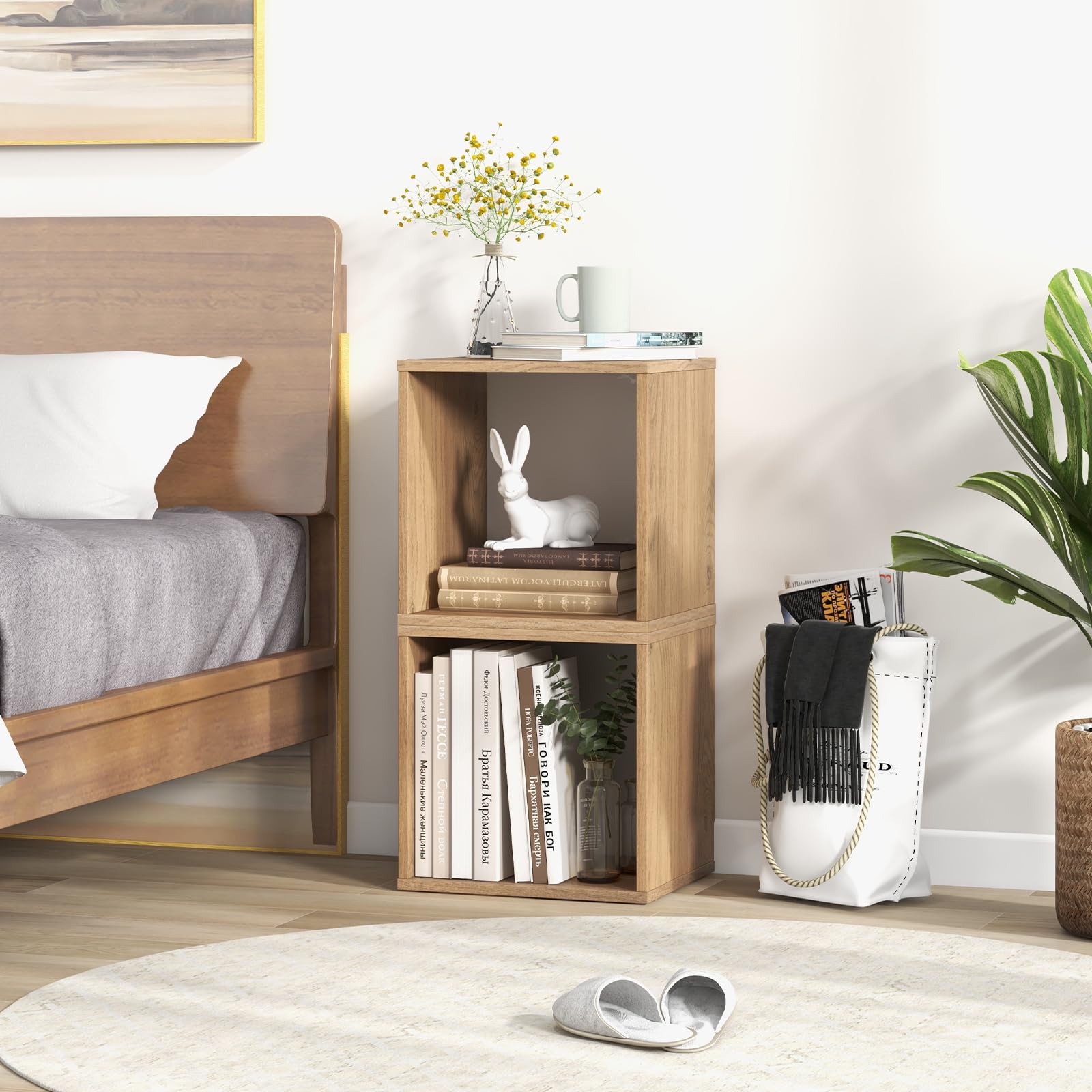- [Free Stacked Storage Cubes]: Place these 2 storage cubes horizontally or vertically to fit your space. Want to create a storage wall? No problem! Simply use multiple sets together to make your furniture layout more flexible. And the wooden dowels make stacked cubes stable.