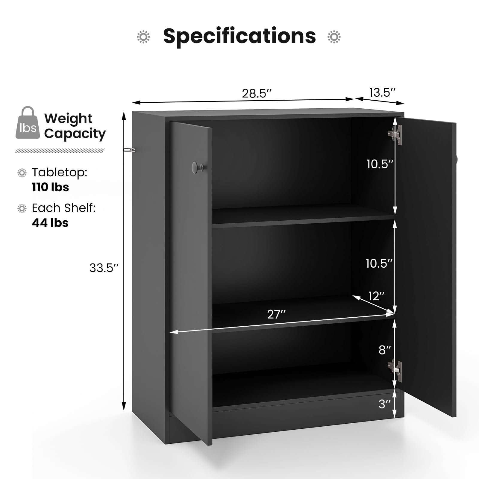 - Easy to Assemble & Maintain: Thanks to the detailed instructions and all the accessories in the package, you are able to easily put this 2-door storage cabinet together. Better yet, the surface is smooth and flat, which requires very little cleaning and maintenance in daily life. Overall Dimension: 28.5" x 13.5" x 33.5".