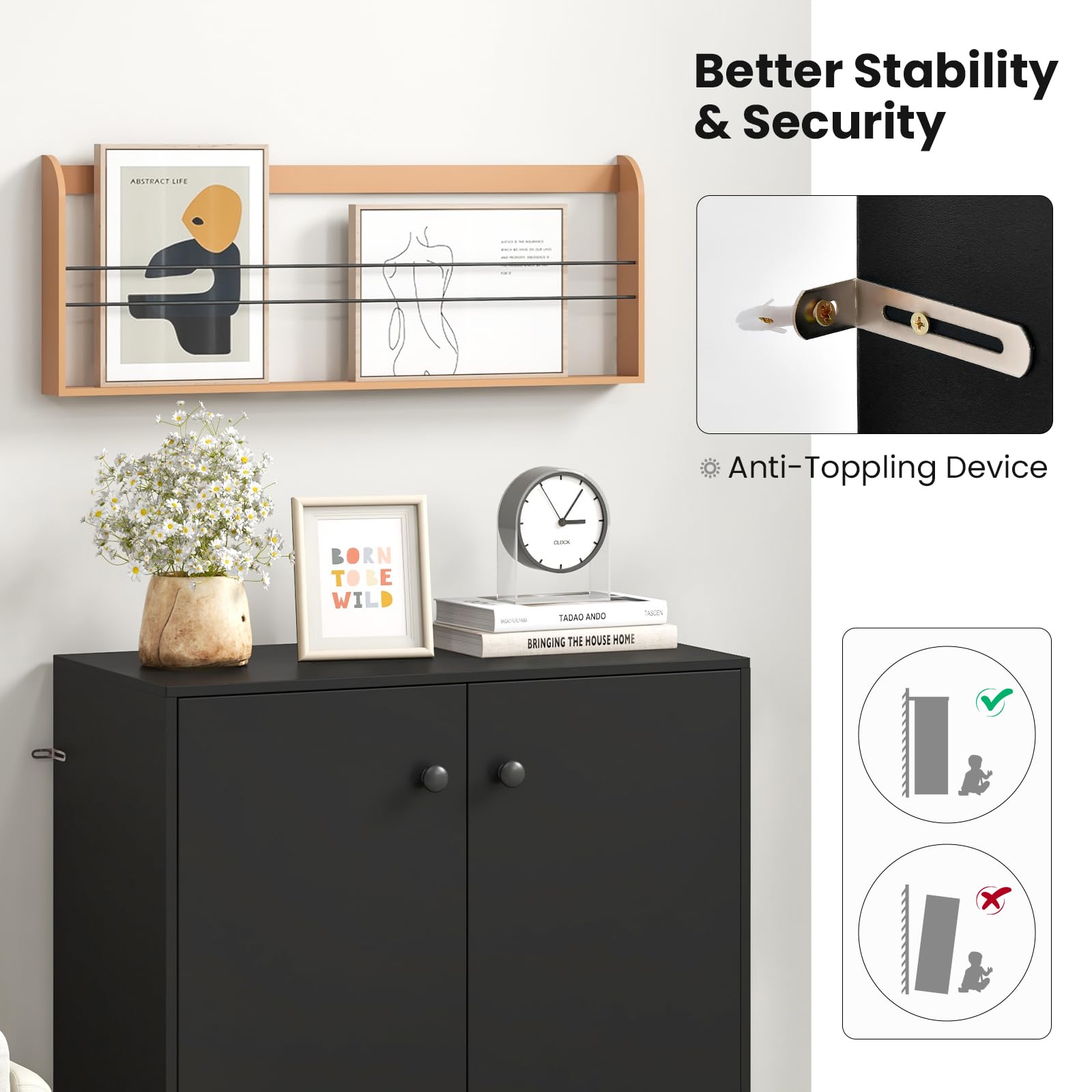 - Anti-toppling Device & Non-slip Foot Pads: To further improve safety and stability, our floor cabinet is equipped with anti-toppling fittings to fix it to the wall. Non-slip foot pads effectively prevent the floor from being scratched. This freestanding cabinet can hold a total of 242 lbs without wobbling.