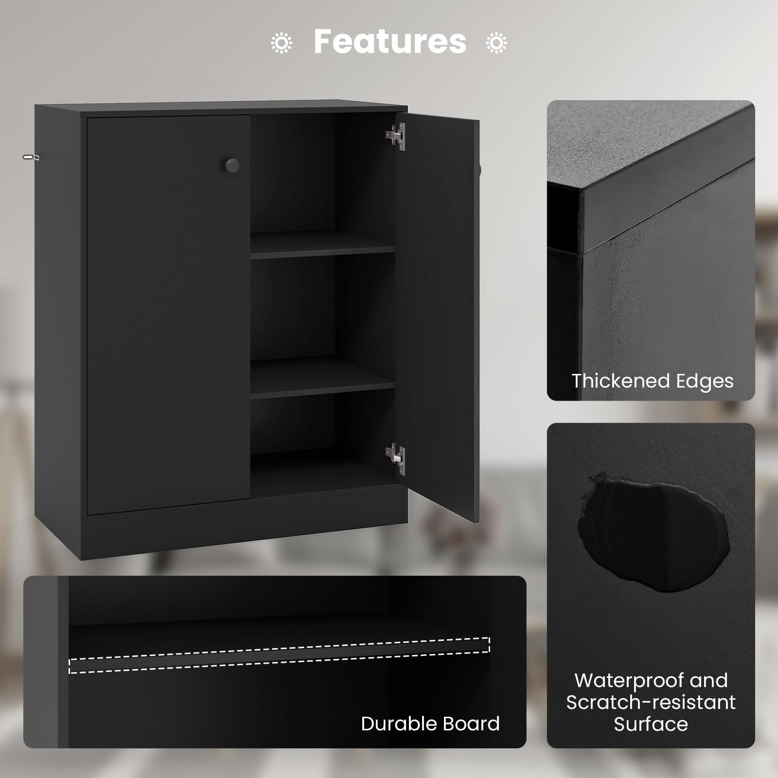 - Large Storage Space: This storage cabinet with two doors can keep your items clean and dry. The 3-tier inner shelf provides ample storage space and allows you to classify different items. Plus, the spacious top is a good place to showcase artwork, potted plants, photos and more.