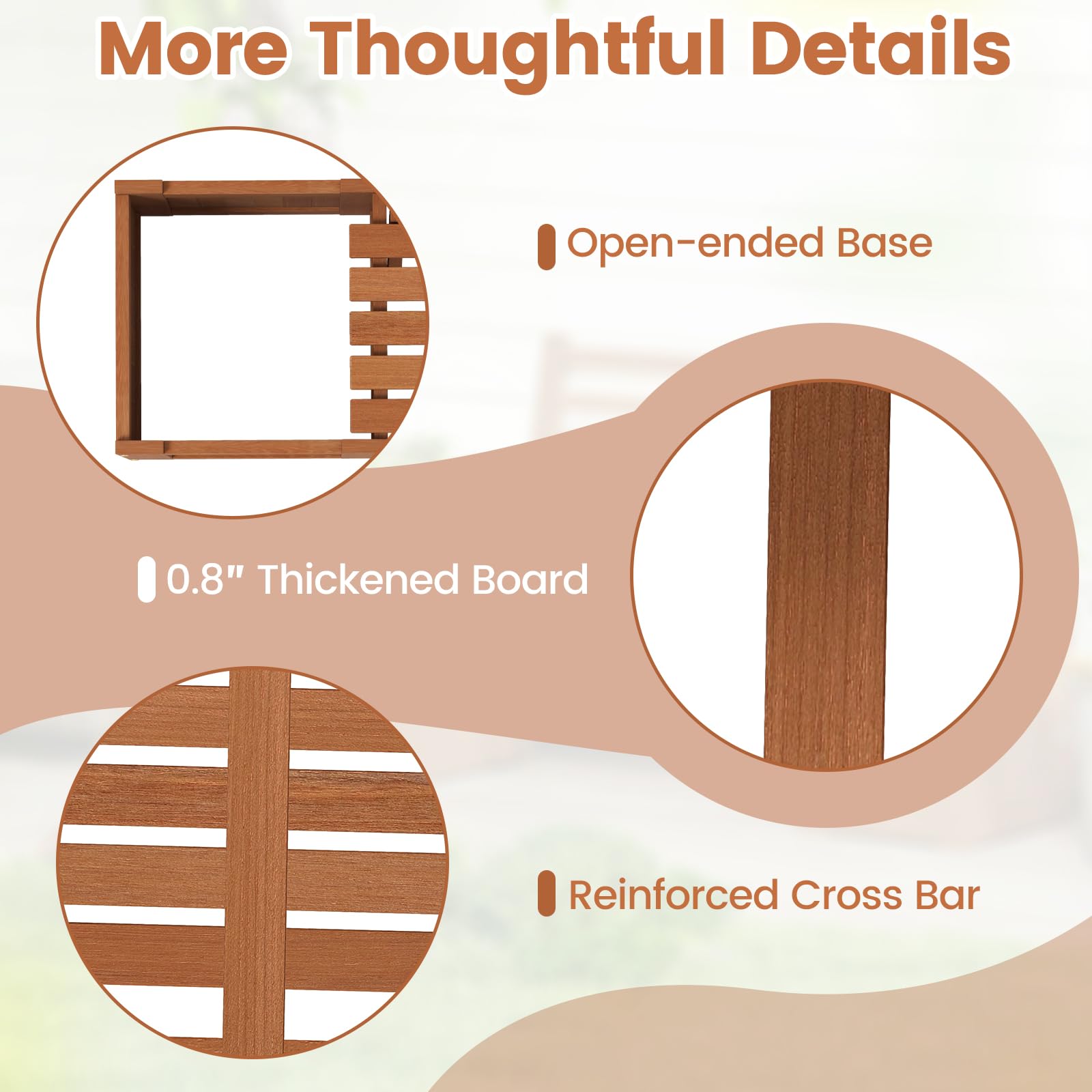 Are you looking for a versatile addition to your outdoor space? This innovative garden bench is the perfect solution! It combines a spacious, comfortable bench with 2 large planter boxes. Whether you want to relax and enjoy the tranquility of nature or tend to your plants, this bench meets all your needs. Crafted from high-quality hardwood, it is sturdy and reliable, with a surface pre-treated with teak oil to ensure long-term use while maintaining its natural charm. The breathable slat backrest and wide seat offer a comfortable sitting experience for two, while the 17” deep planter boxes with open-ended bases promote healthy plant growth. Hence, this garden bench is truly a thoughtful and practical addition to any outdoor area.