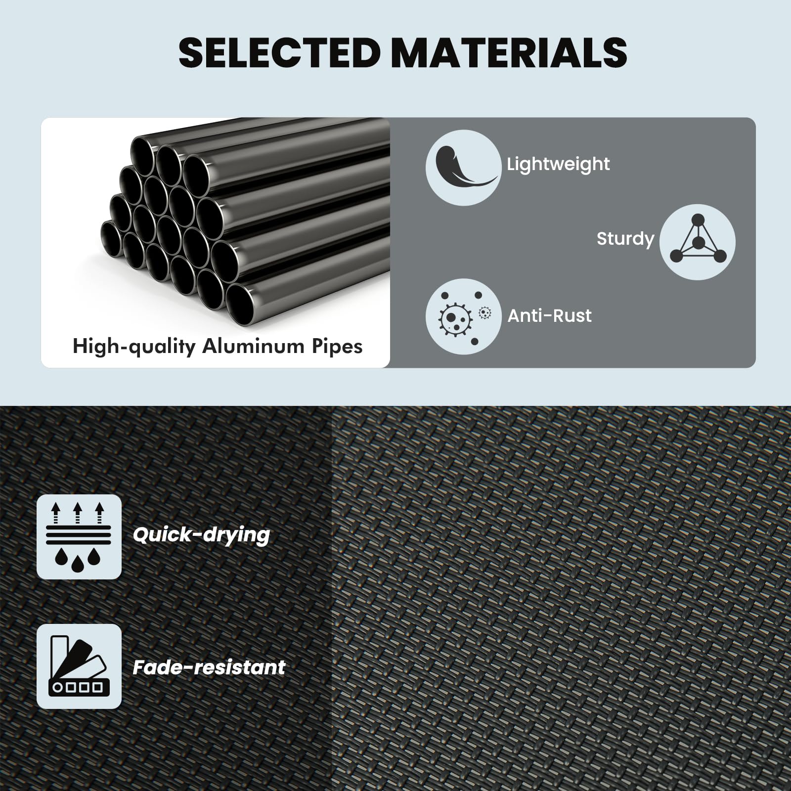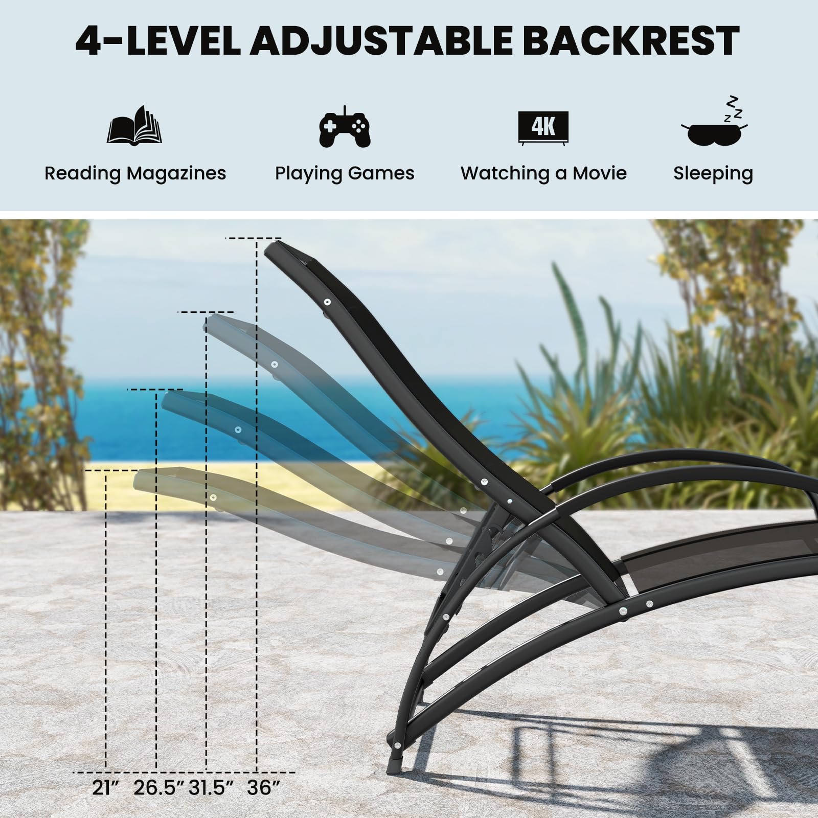 Applicable to many scenes like patio, poolside, yard, balcony and more