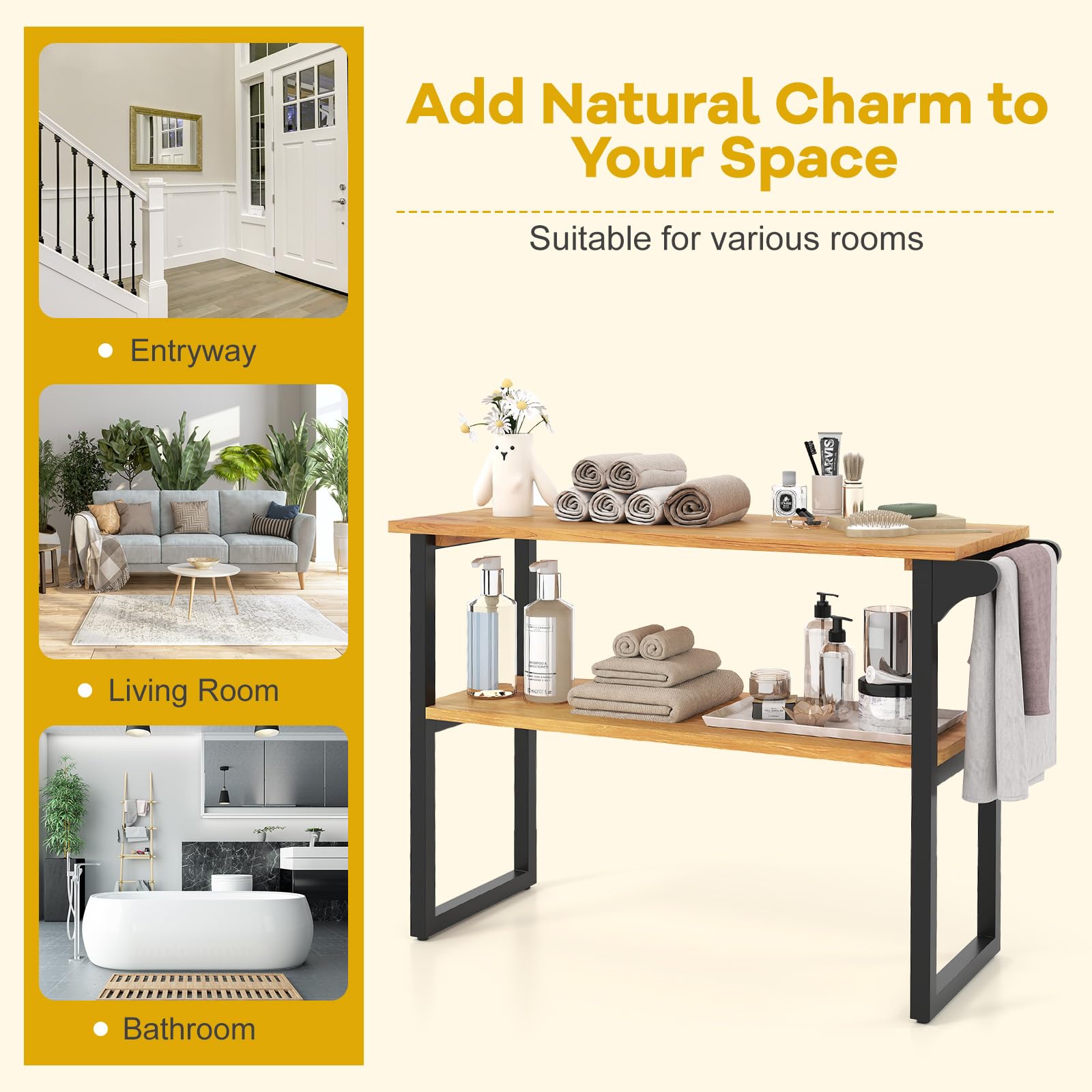This 2-tier storage rack allows you to experience the luxury of premium teak wood. Equipped with a towel rack and 2-tier storage shelf, it offers spacious storage for towels, toiletries, and more. With its timeless elegance, this storage unit seamlessly blends into any home decoration, providing a functional and stylish storage solution for your space.