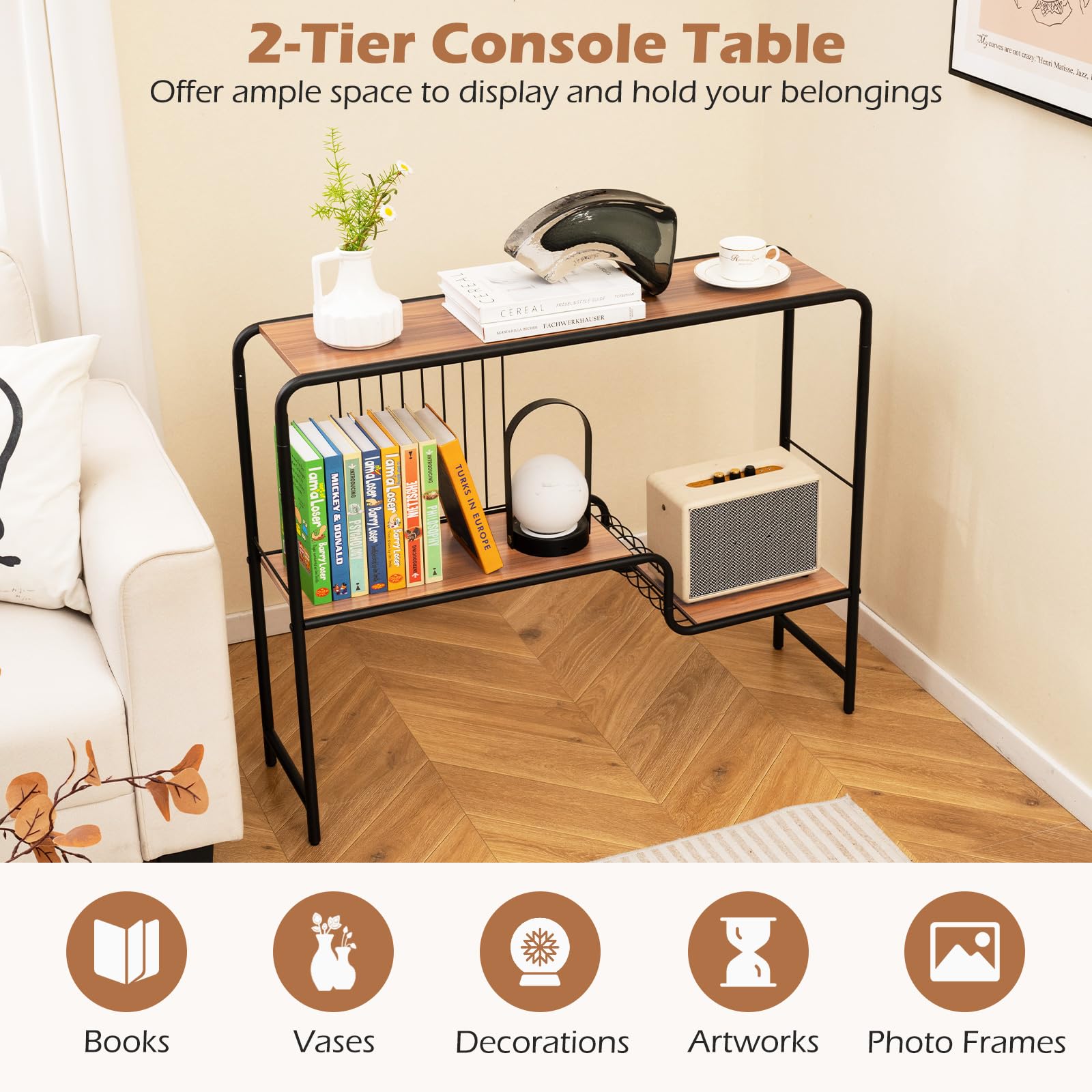 - [Utilize Your Space Efficiently]: The 2-tier console table offers ample space for displaying and storing your books, vases, decorations, artworks, and photo frames. With plenty of room underneath for maximum storage and easy cleaning.