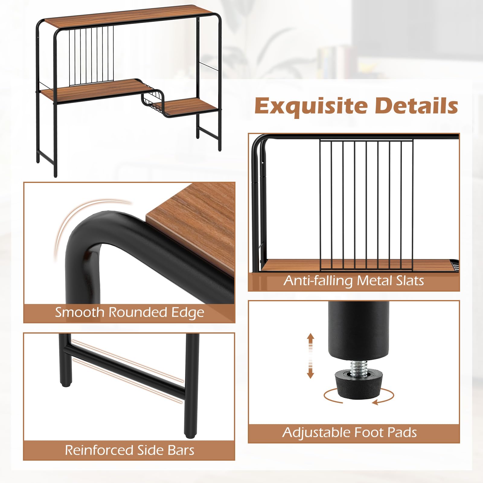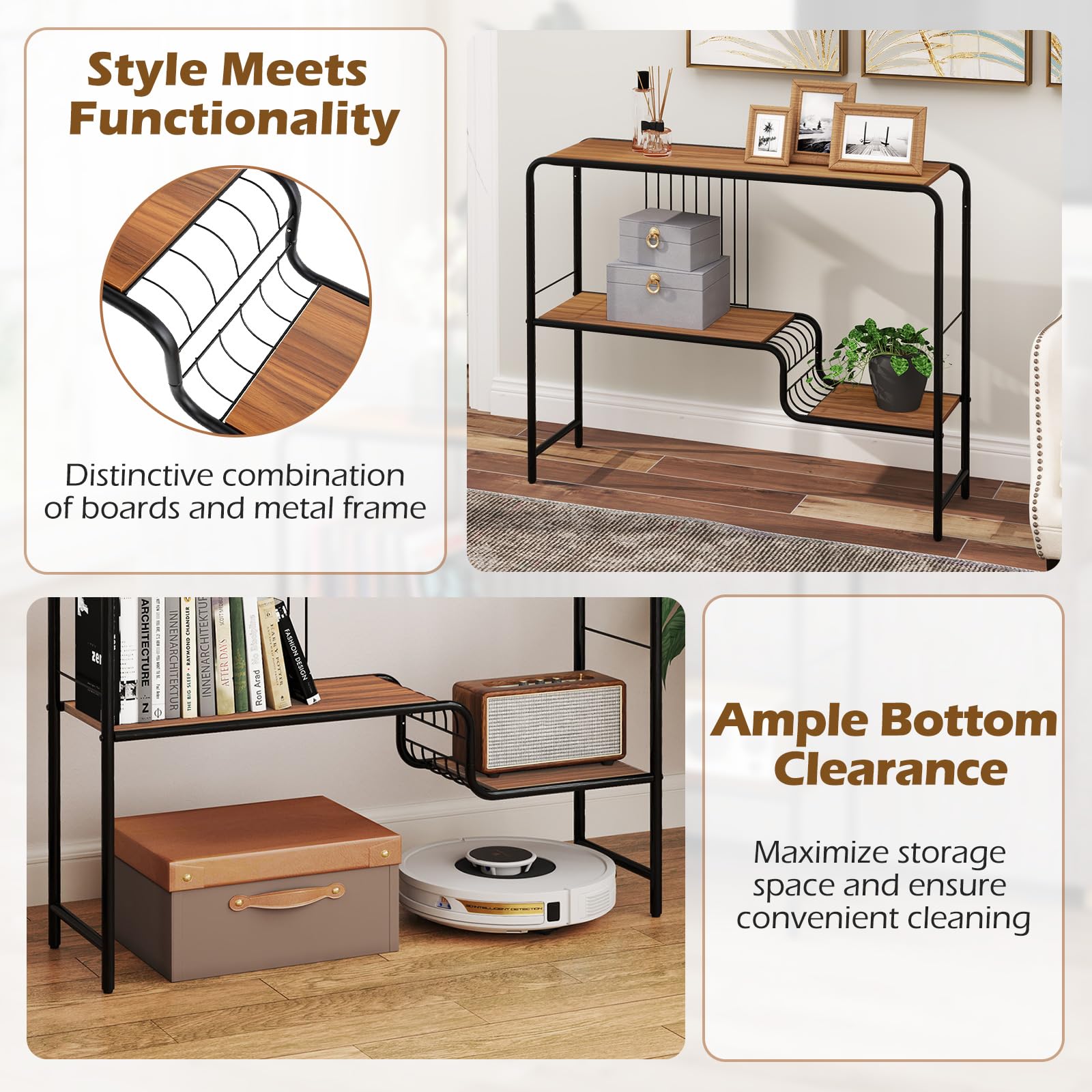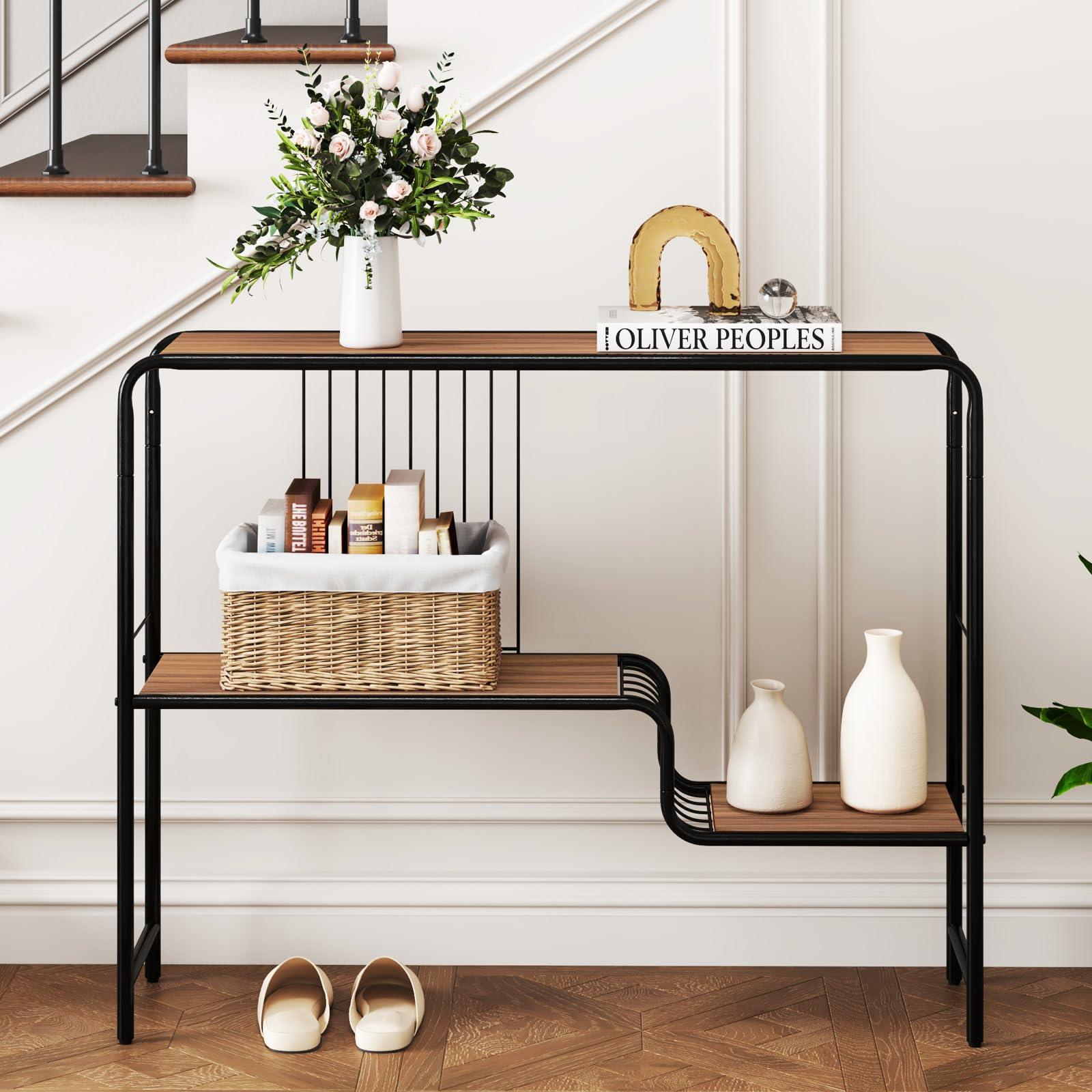 - [Enduring and Thoughtful Design]: Reinforced side bars and anti-falling metal slats of this hallway table provide enhanced structural support and protection for your belongings. The smooth rounded edges ensure safe use in your home.
