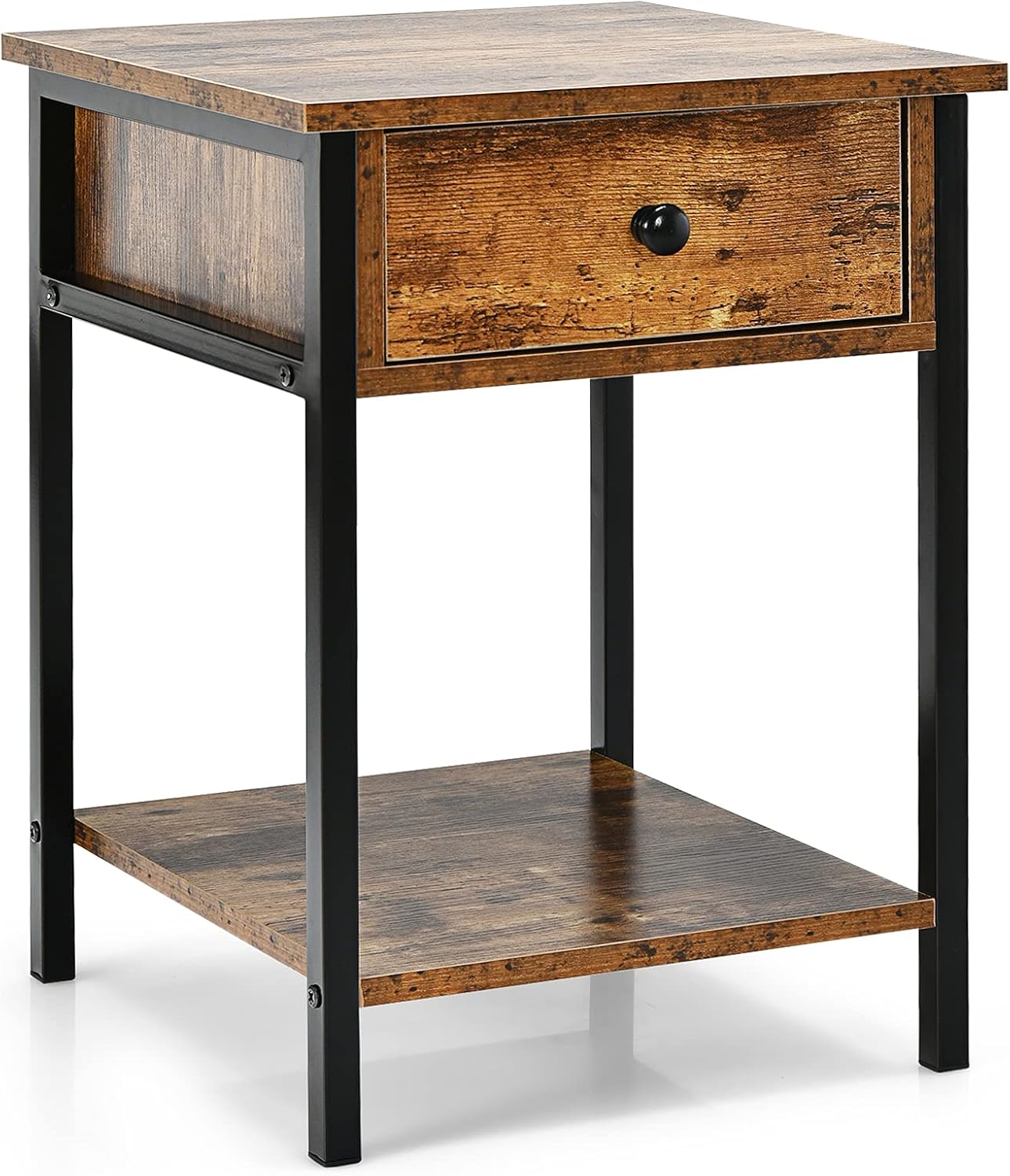This bedside table is made of high quality engineered wood, which provides long service life. The solid construction with non-slip foot pads adds additional stability and durability. More, it has a drawer, an open shelf and a large tabletop to help you organize various items. Thanks to the smooth tabletop, you can clean it with a wet damp easily. Its exquisite appearance makes it suitable for many places, such as bedroom, office and so on. Enjoy your leisure time with this elegant table!
