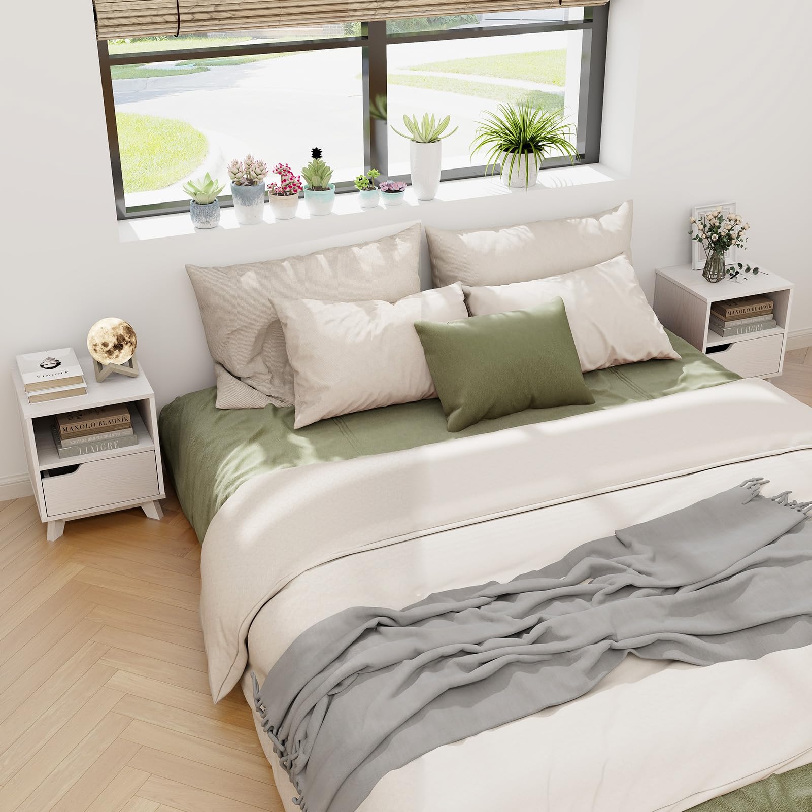- [Multi-scene Use]: This white nightstand not only offers convenient storage but also serves as a stylish bedside table or accent piece. The spacious tabletop is perfect for displaying decorative items or keeping frequently used items within easy reach.