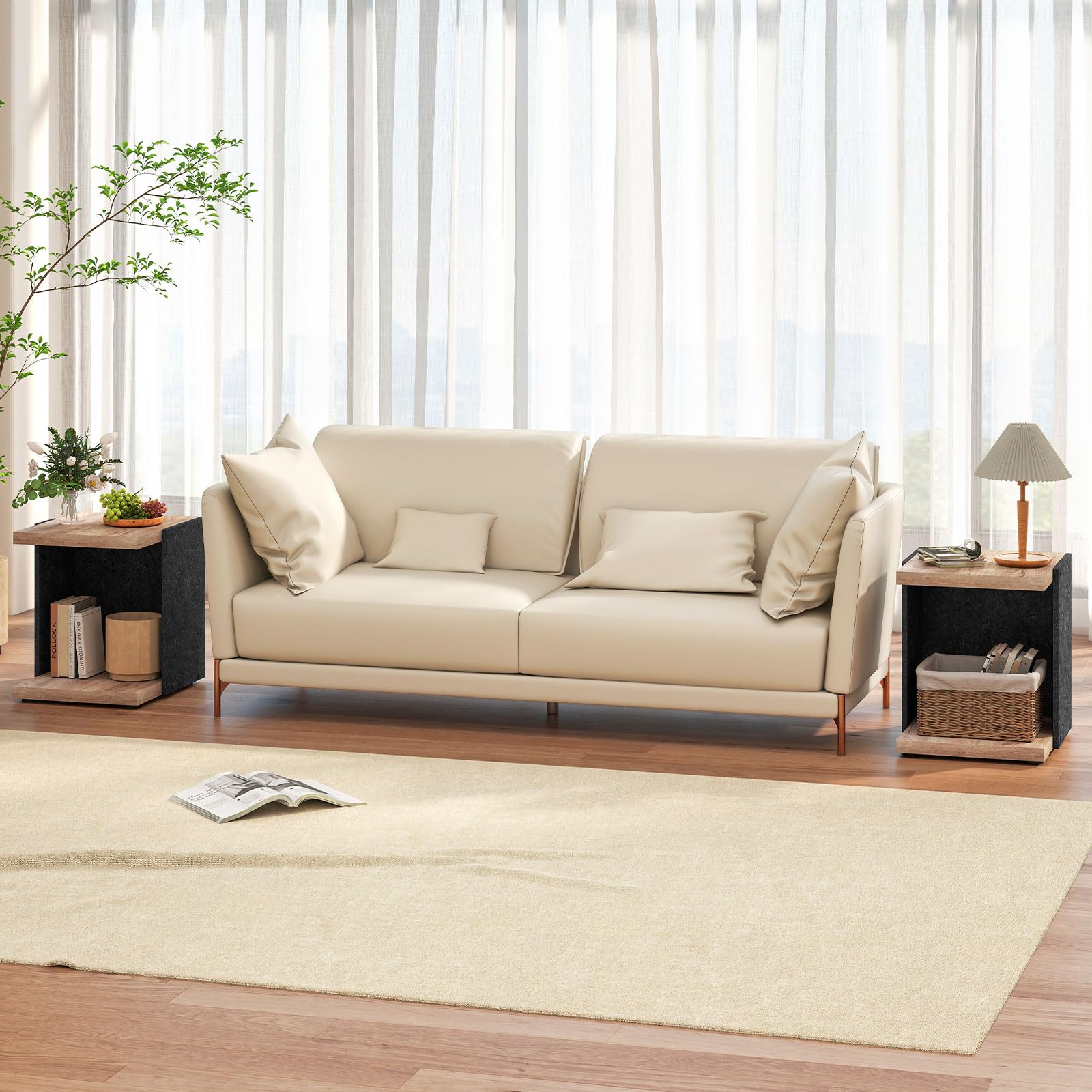 The 2-tier design offers ample storage and display options, including a rectangular top to keep daily items organized and an open storage shelf for easy access. Built with thickened boards, the side table promises excellent durability and stability. The raised support legs not only contribute to the robust structure but also prevent direct contact with the floor. This bedside table features oak wood grain combined with black accents, creating a unique and trendy look. Whether placed in your living room or bedroom, this end table acts as a charming accent piece.