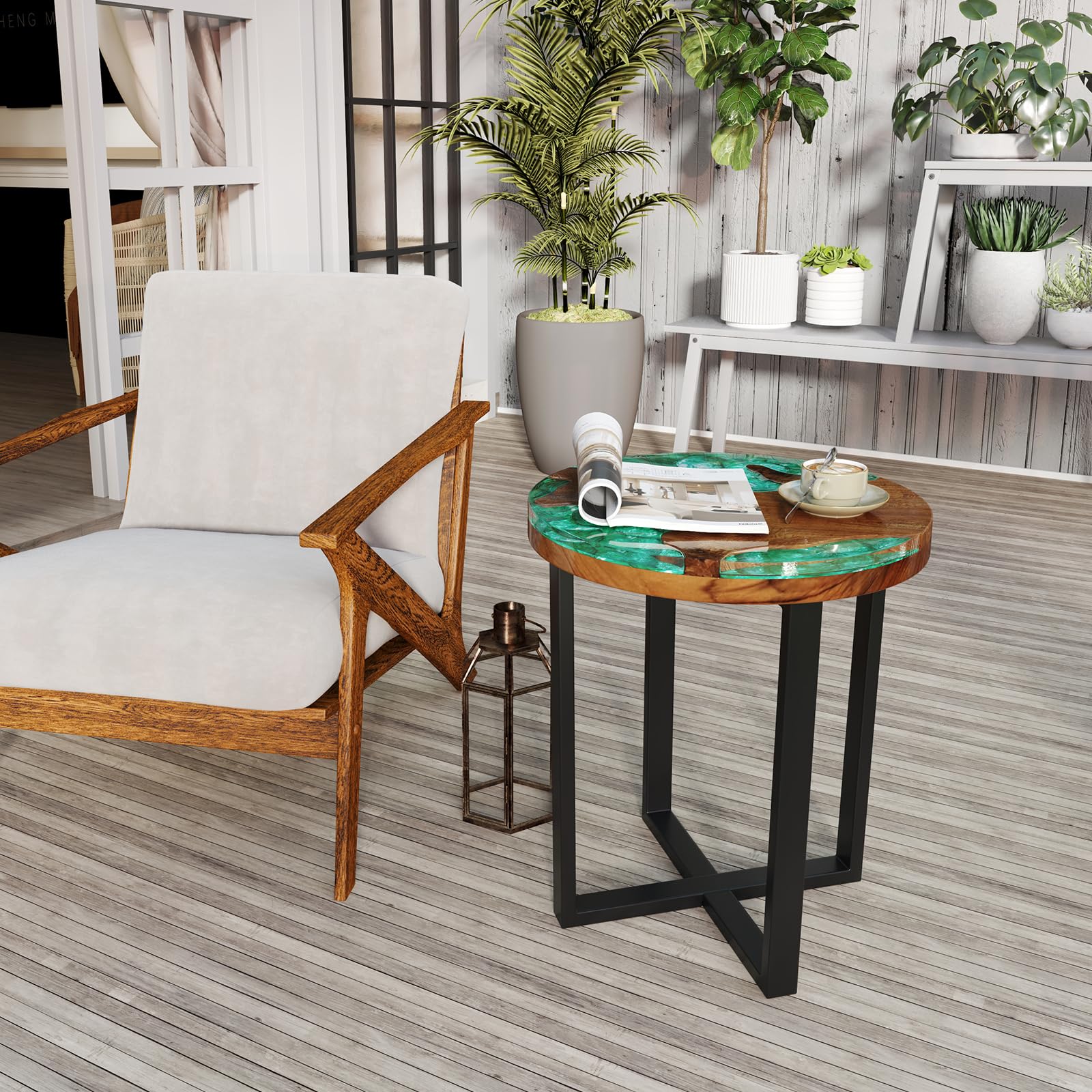 The epoxy resin tabletop adds a touch of warmth and sophistication.
