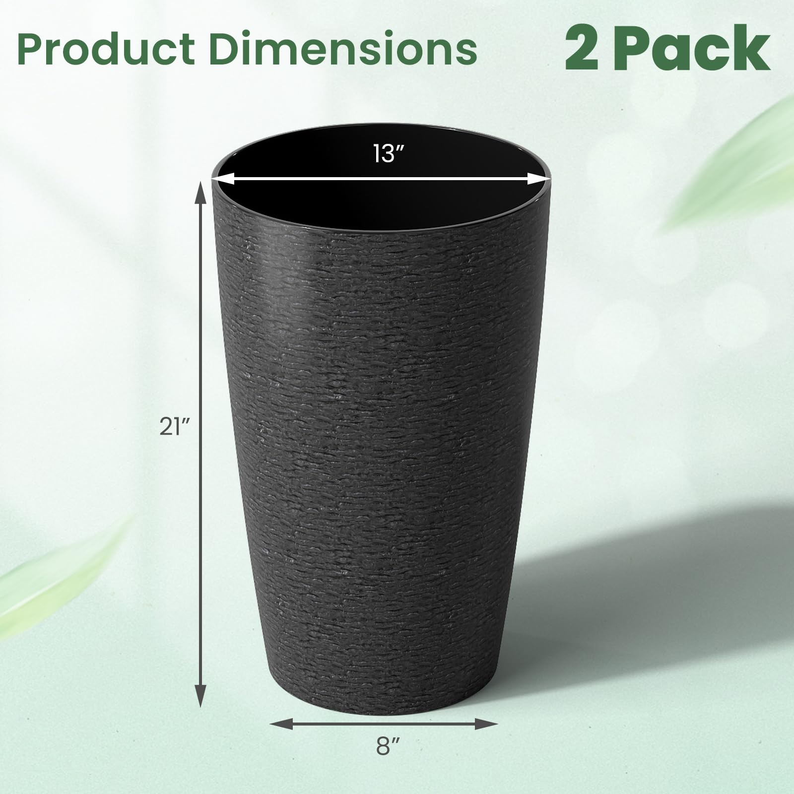 The large planter in this set provides ample room for deep-rooted plants to thrive, allowing you to create stunning floral displays both indoors and outdoors. Crafted from PP material, these planters boast sun-proof and anti-fading properties, ensuring durability in various weather conditions. With this 2-pack of flowerpots, you have the freedom to unleash your creativity by arranging them in various configurations. Whether you prefer a symmetrical layout or a more eclectic design, these planters offer endless possibilities. Additionally, the 3 pre-marked drainage holes are available for manually drainage, which allows you to tailor the watering needs of your plants. Thanks to their stackable design, these planters offer a convenient storage solution when not in use.