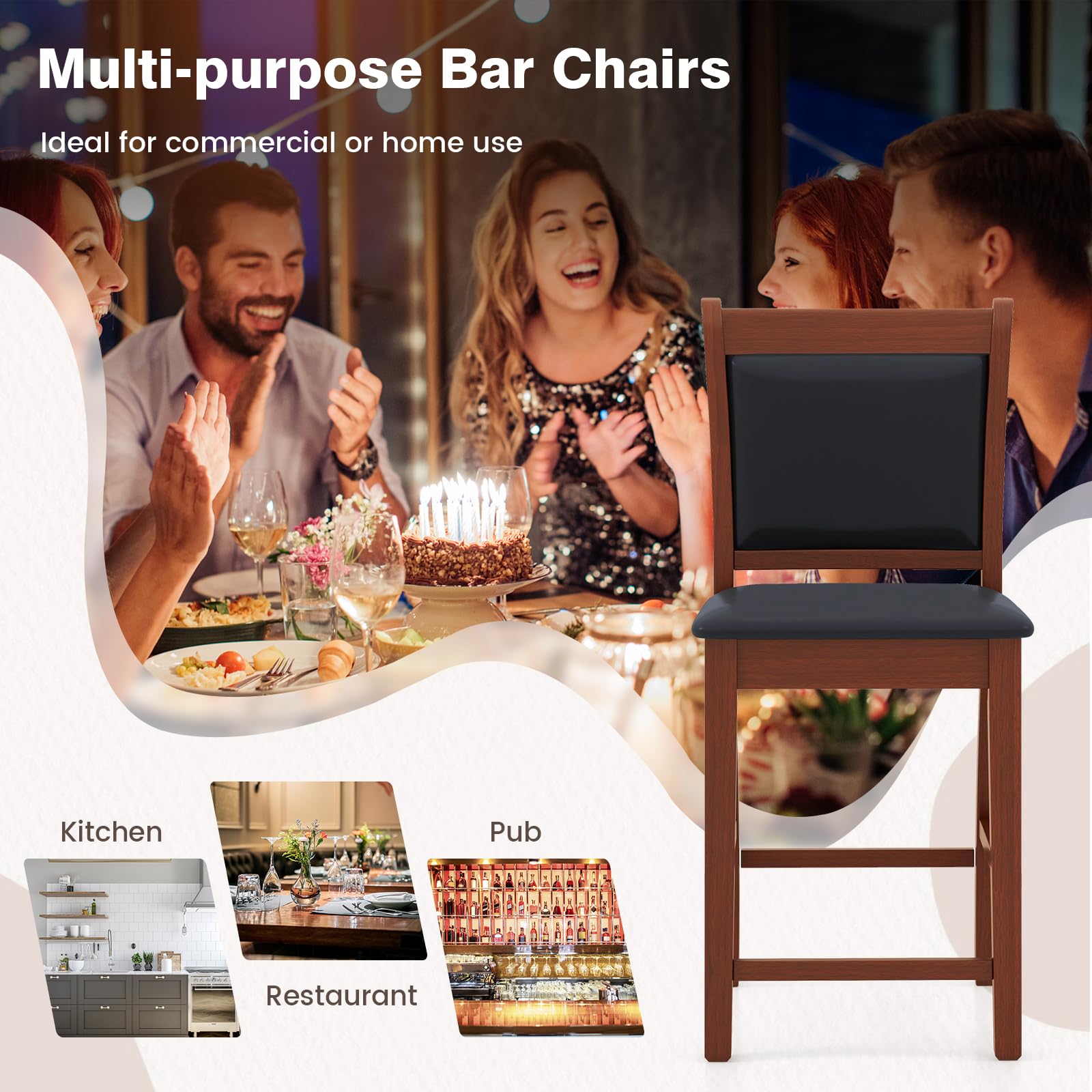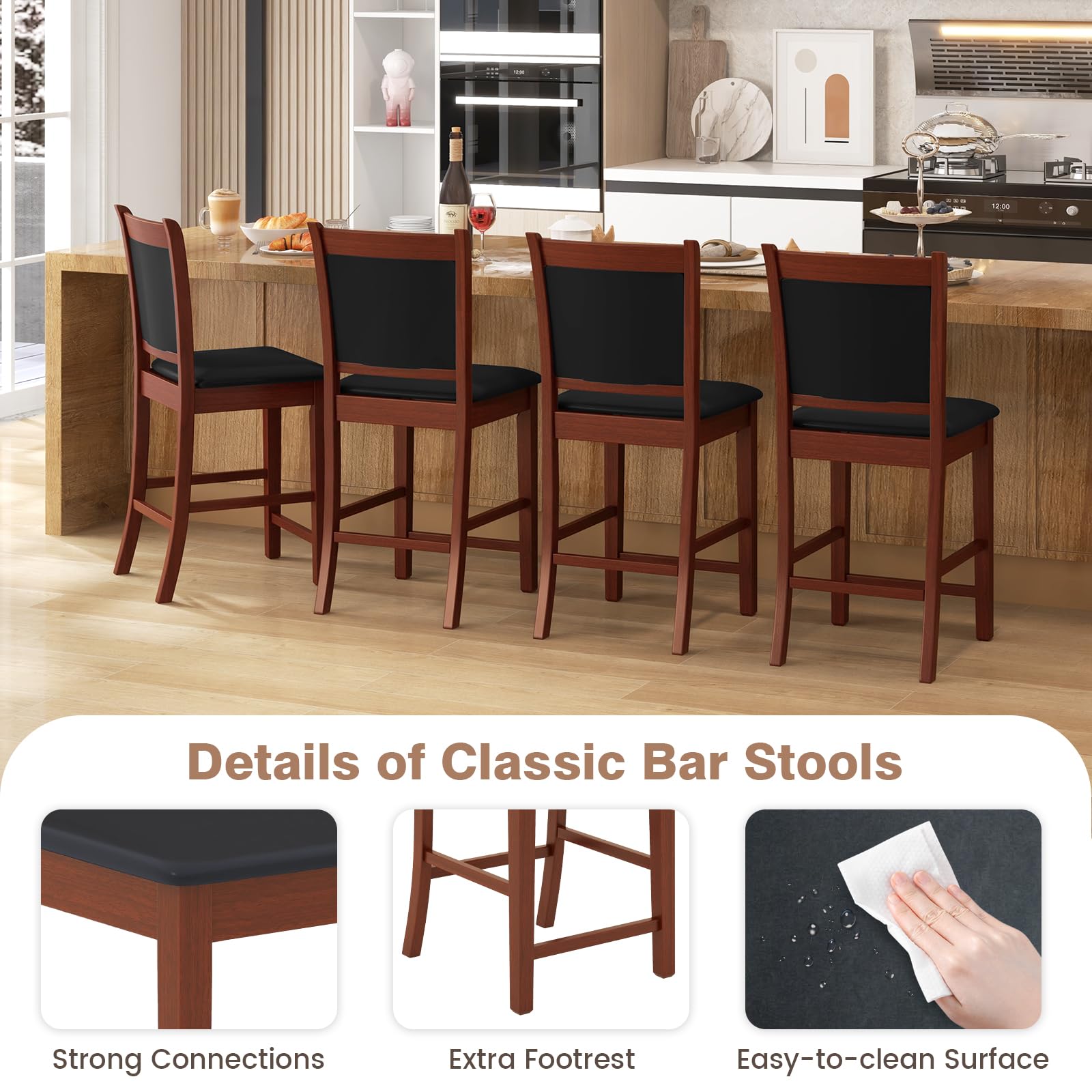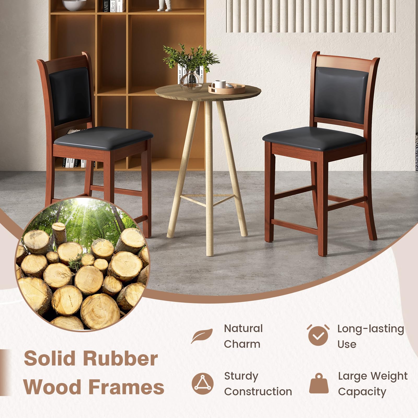 - [Solid Rubber Wood Frame]: Crafted from durable rubber wood, our Giantex bar stools guarantee long-lasting use and sturdy construction, allowing you to enjoy exceptional comfort for years to come. And the robust solid wood frame provides a large weight capacity of up to 280 lbs.