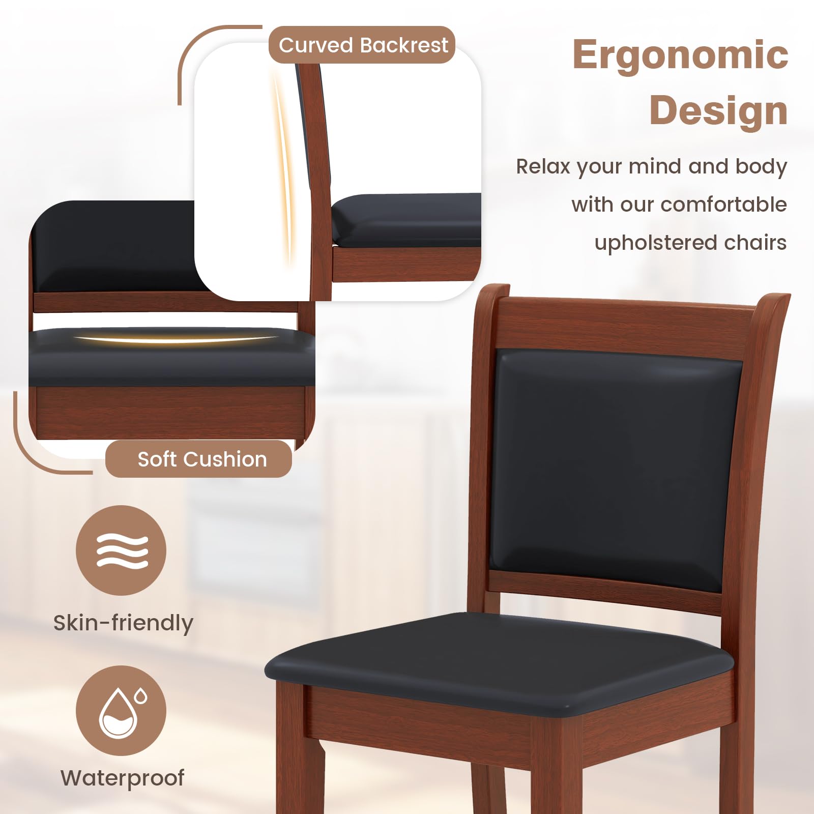 - [Ergonomic Design for Ultimate Comfort]: The ergonomic backrest contours to the natural shape of your spine, providing optimal support and promoting proper posture. What’s more, thanks to the extra footrest, you can sit comfortably for long periods of time, whether you're dining or conversing.