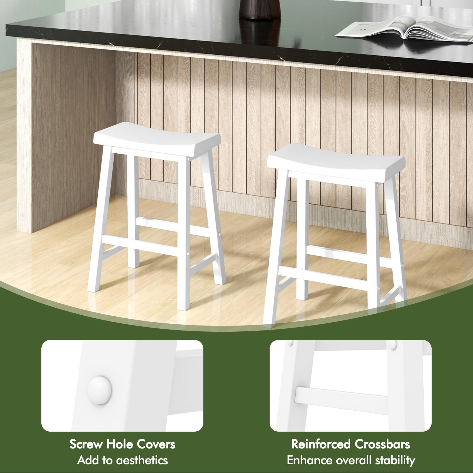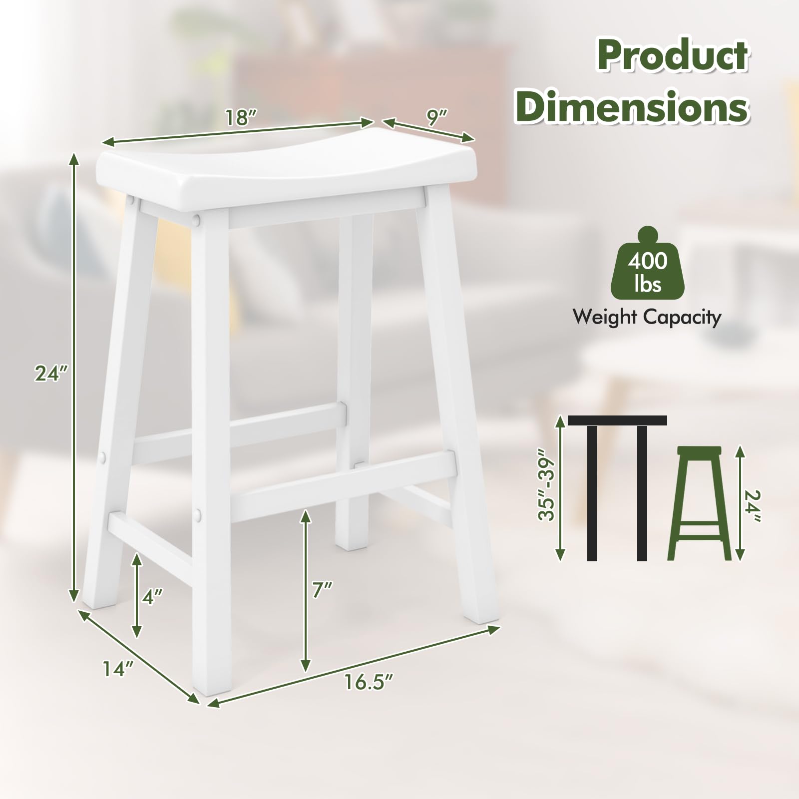 Made with premium rubber wood, the stable legs and cozy footrests are wear-resistant, scratch-resistant, and crack-resistant. These bar chairs are designed with saddle seats that offer a cozy experience for you, while the user-friendly footrest adds extra comfort. With a seat height of 24 inches, the bar stools are ideal for counters or tables ranging from 35 to 39 inches in height. Whether for kitchens, dining rooms, and bars, these counter height stools are a perfect option. The 400 lbs large weight capacity allows these barstools to accommodate a variety of people with ease.