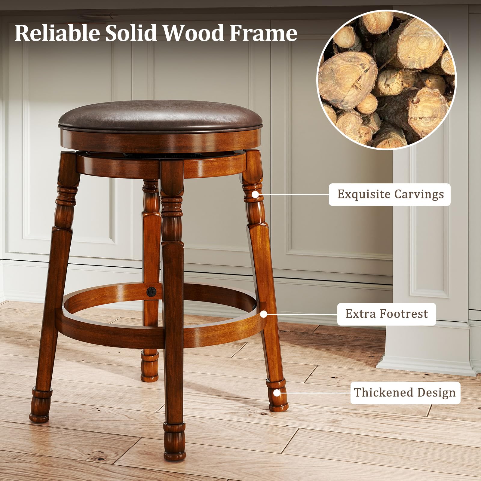 Elevate your dining or entertainment space with our stylish and functional barstools. Featuring a 360° swivel design, these barstools offer a relaxing experience with a stabilizing swivel tray for easy rotation. The ultimate comfortable seating experience is achieved with a footrest, high-quality PU leather surface, and soft sponge-padded cushion. Crafted with a reliable solid wood frame, these barstools are built to last and can support up to 265 lbs. Their multifunctional design makes them suitable for various settings including dining rooms, kitchen islands, bars, restaurants, and cafes. Embrace a chic retro style with these barstools' exquisite carvings and sleek modern aesthetic, seamlessly blending into any interior decoration.