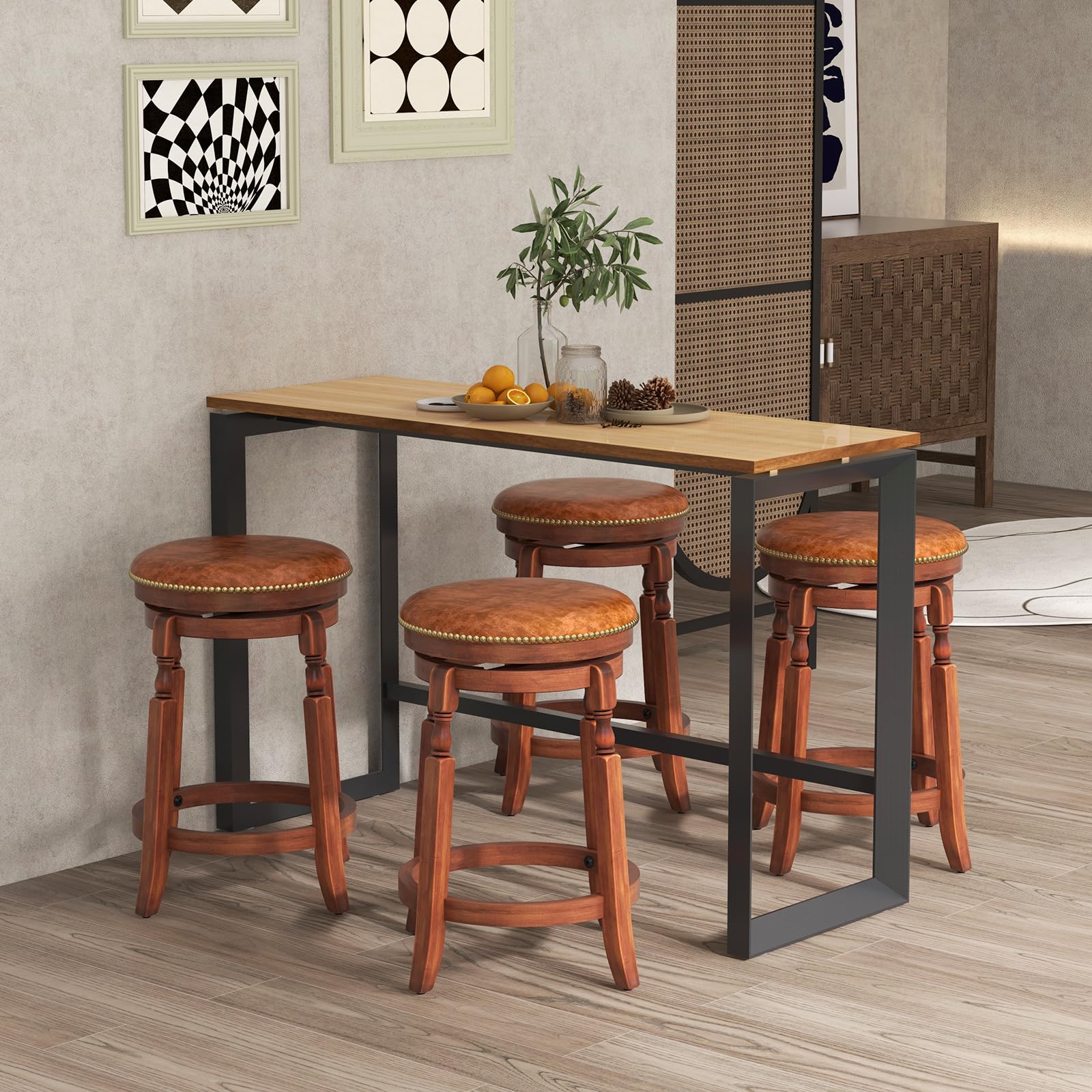 • [360 Degree Swivel]: Effortlessly turn around with this Giantex round bar stool that features a 360° swivel seat. The convenient seat ensures easy interaction with your surroundings without having to move the entire stool.