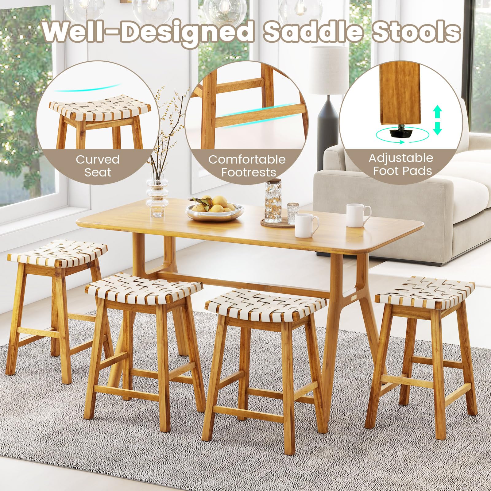 - [Ergonomic Bar Stools]: Giantex saddle bar stools feature curved seat for a better sitting experience. And the saddle seat design allows you to sit with different postures. Plus, the comfortable footrests also make you more relaxed.