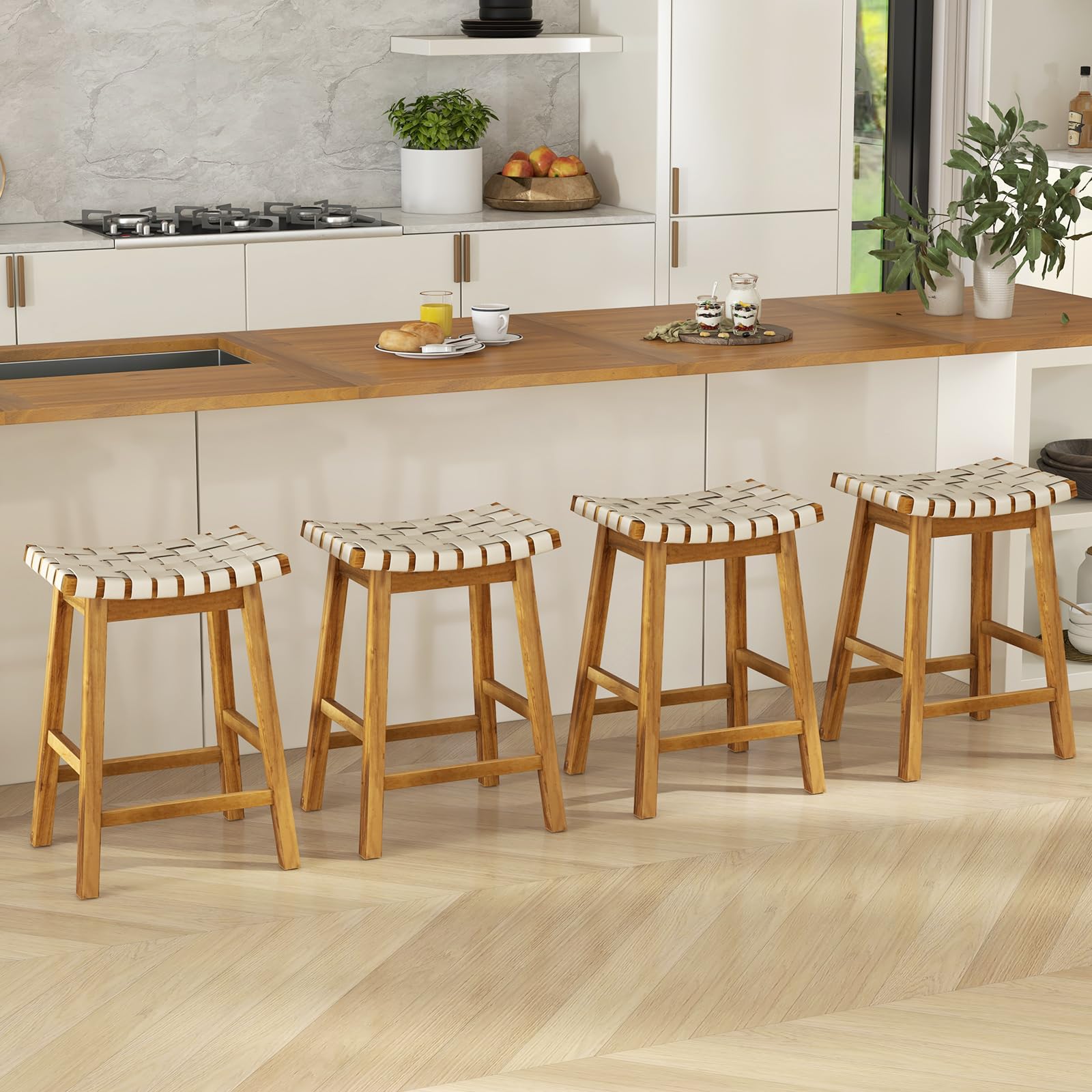 - [Solid Wood Construction]: Giantex barstools feature rubber wood crossbars and acacia wood stool legs, which are natural and burr-free. Such a high-grade wood frame will withstand long-time use and offer strong support.