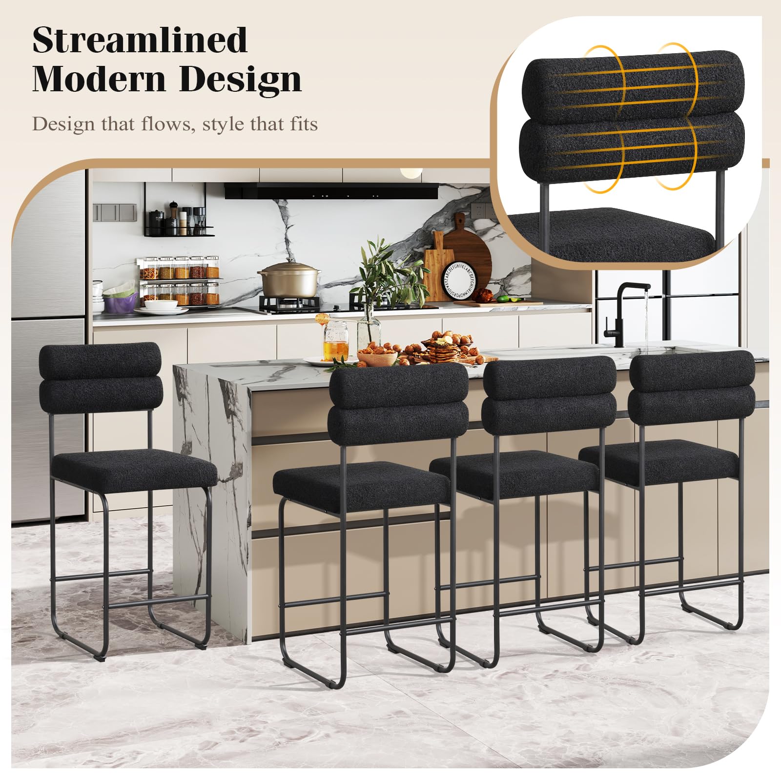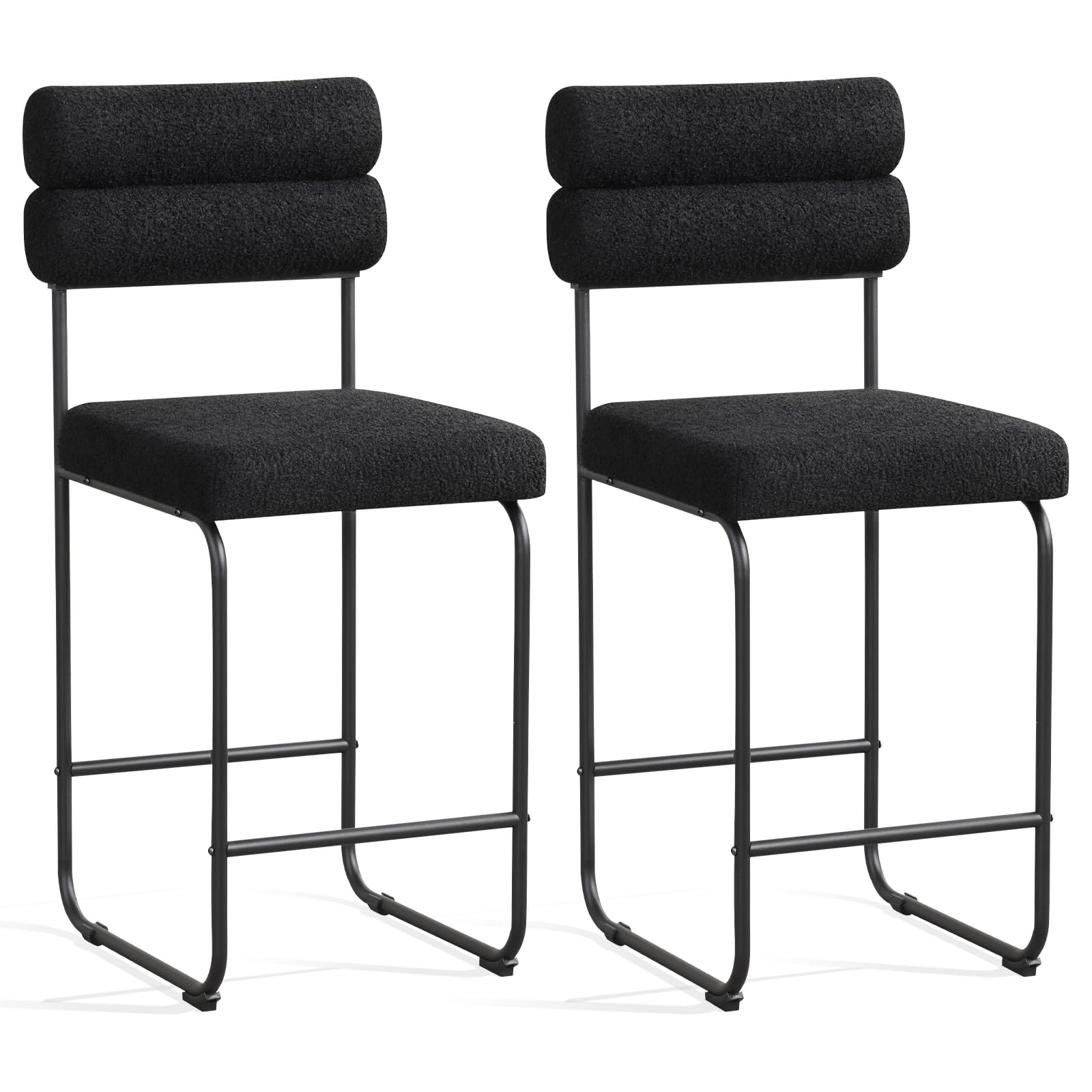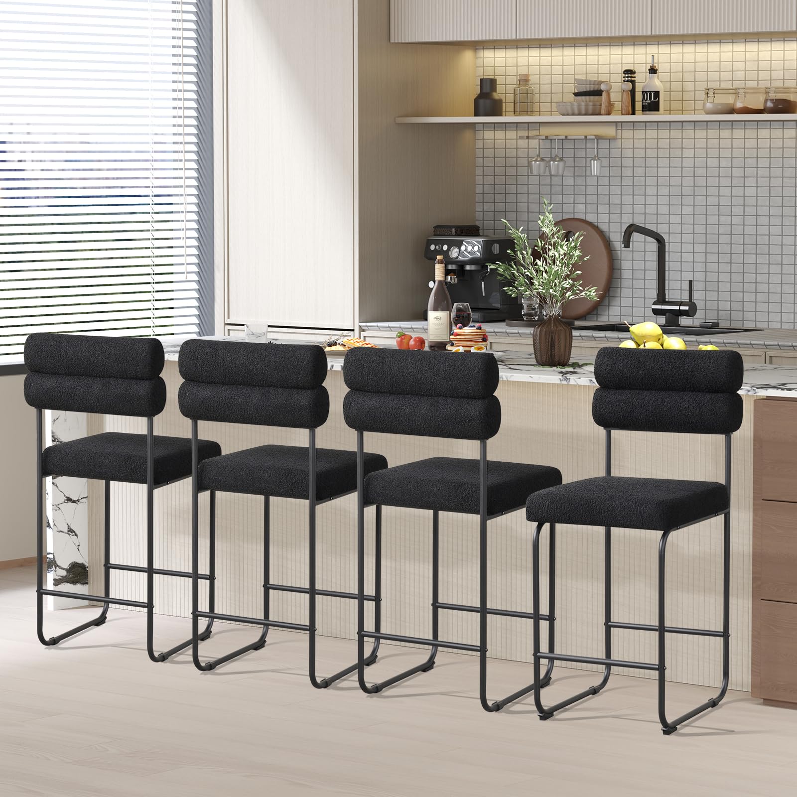 Thanks to the comfortable padding, including the high-density sponge and cozy teddy fabric, the bar stool set provides optimal comfort. In addition, each bar chair comes with a reinforced foundation. The metal structure features an anti-slip base and supports up to 330 lbs. The ergonomic footrest not only allows for proper sitting posture but also provides extra reinforcement. Design that flows, style that fits. Enhance the look of your space with the modern design of these counter height stools, suitable for kitchen islands, dining rooms, and cafes. Compatible with 35"-39" high bar tables, each bar stool is a stylish and practical addition for any occasion.