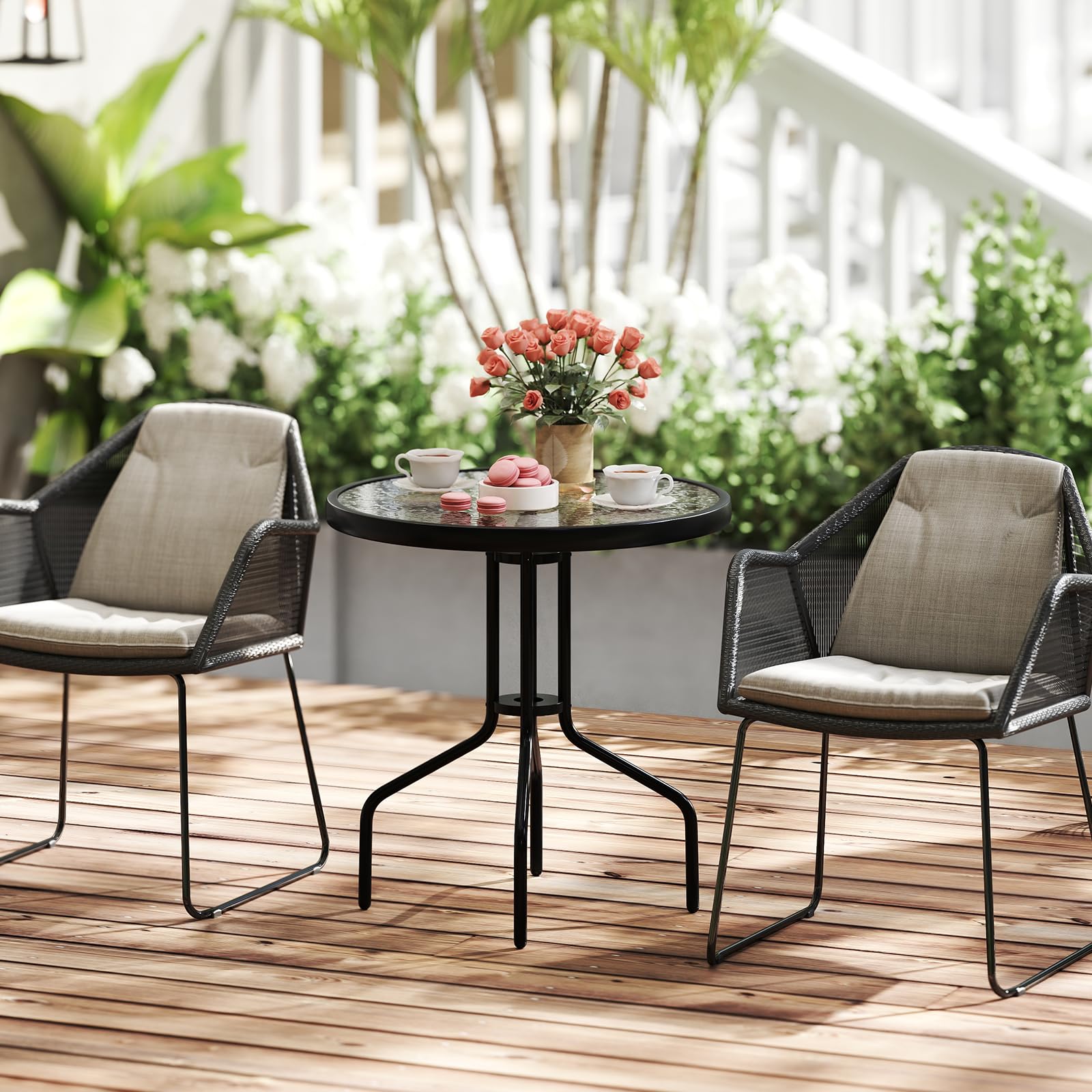 Elevate your outdoor and indoor spaces with this 27.5” round bistro table, blending functionality with a sleek, modern design.
