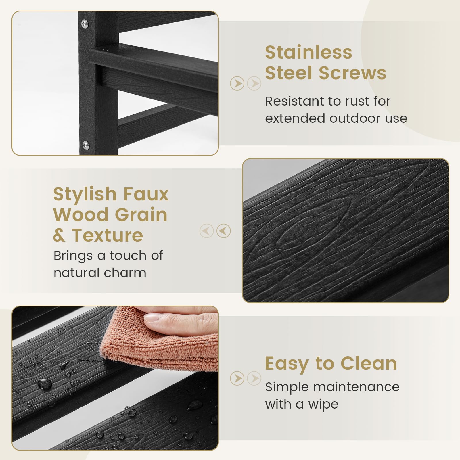 - [Natural Aesthetic Appeal]: The stylish faux wood grains of our HDPE barstools provide a natural texture that complements both traditional and contemporary outdoor spaces. The sleek design adds a touch of sophistication to any setting.