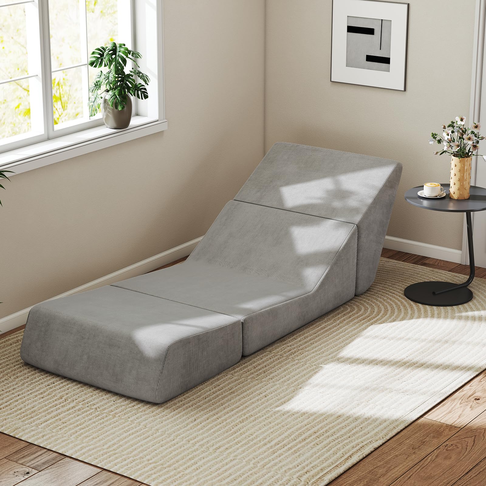 The folding sofa bed serves well as an armless sofa, a lounger, or a bed for sitting, leaning, or lying. Featuring selected corduroy cover and sponge fillings, the convertible sleeper chair creates a comfortable sitting area for you to read, work, study, or relax. The removable and washable zippered cover also makes maintenance a breeze. No assembly is required. You just need to wait for the folding sofa to fully expand for 48 hours. It can be used in living rooms, bedrooms, reading rooms, home offices, etc.