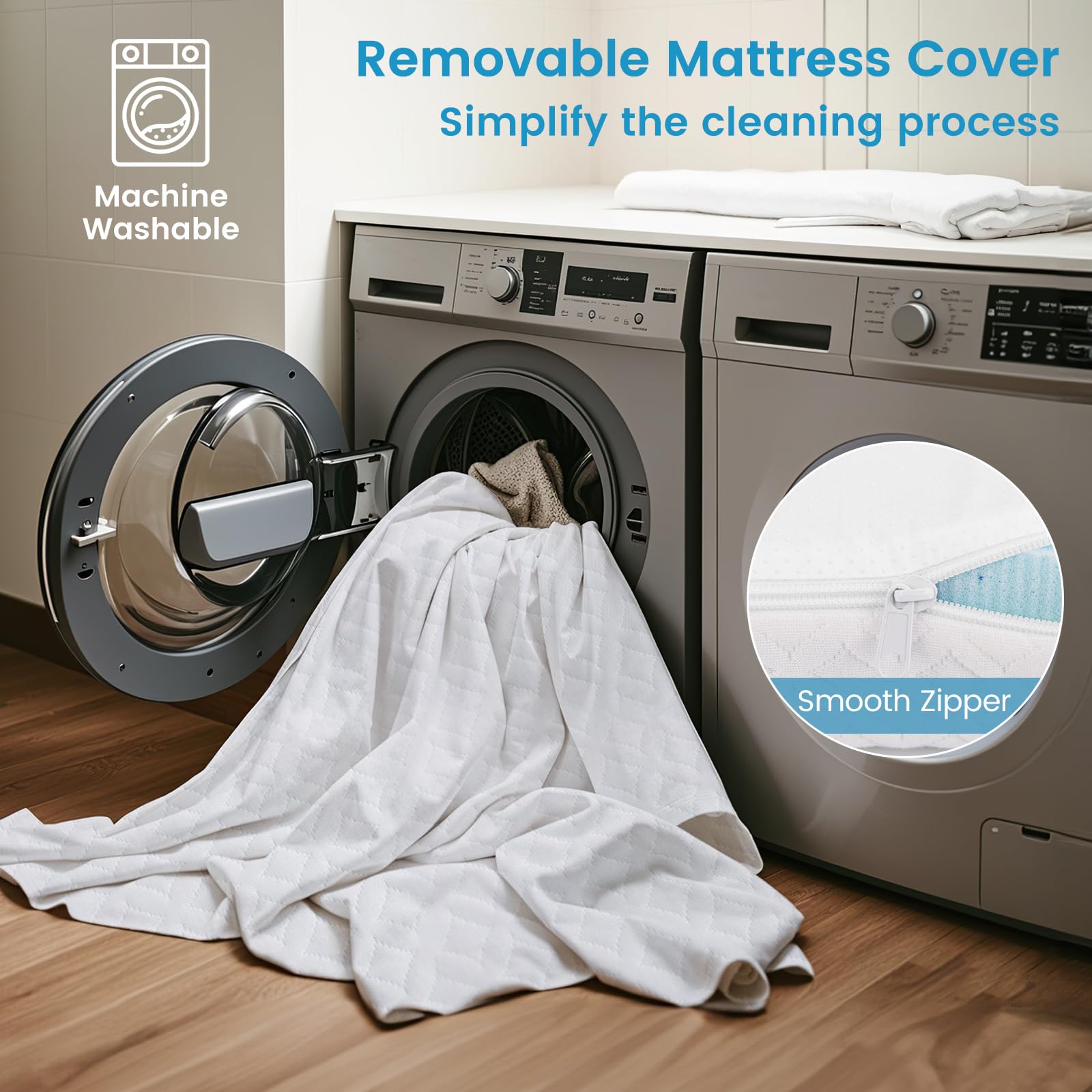 The removable and machine washable cover simplifies the cleaning process
