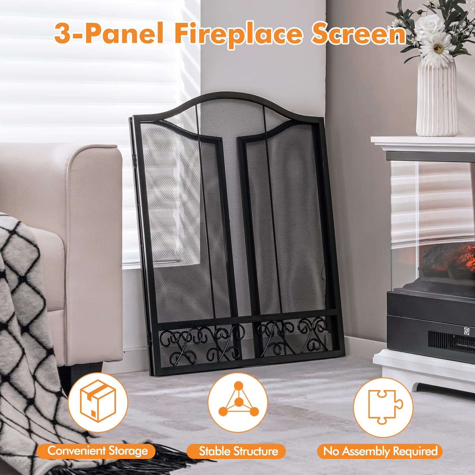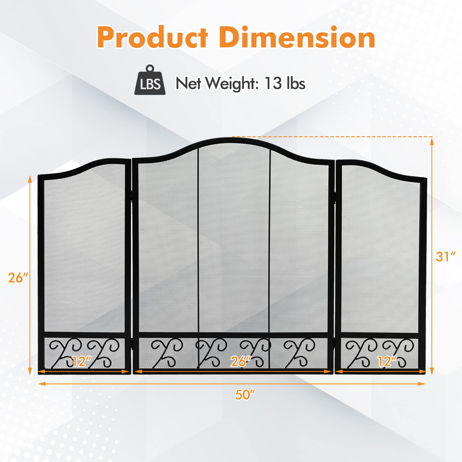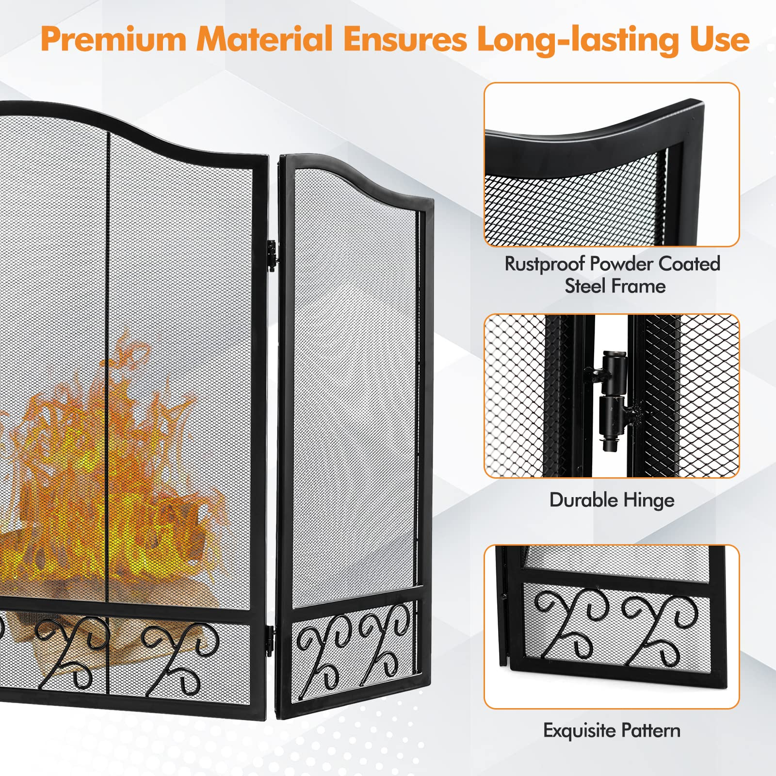 [Powder-coated Steel Frame]: Made of high quality steel frame with powder-coated finish, Giantex 3-panel fireplace screen can resist high temperatures and rust for longer service. In addition, durable hinges between each panel will not break easily and enable frequent usage.