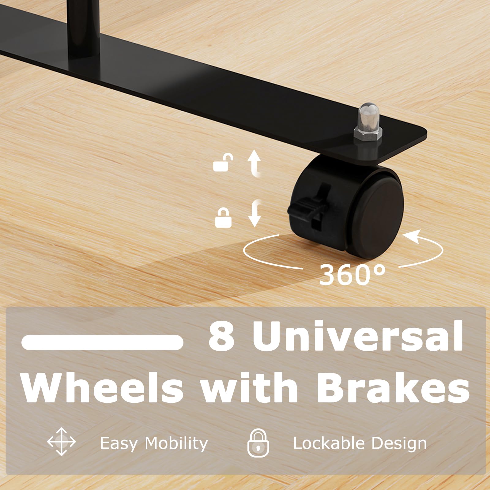 Eight universal wheels (with brakes) allow for effortless movement and secure positioning