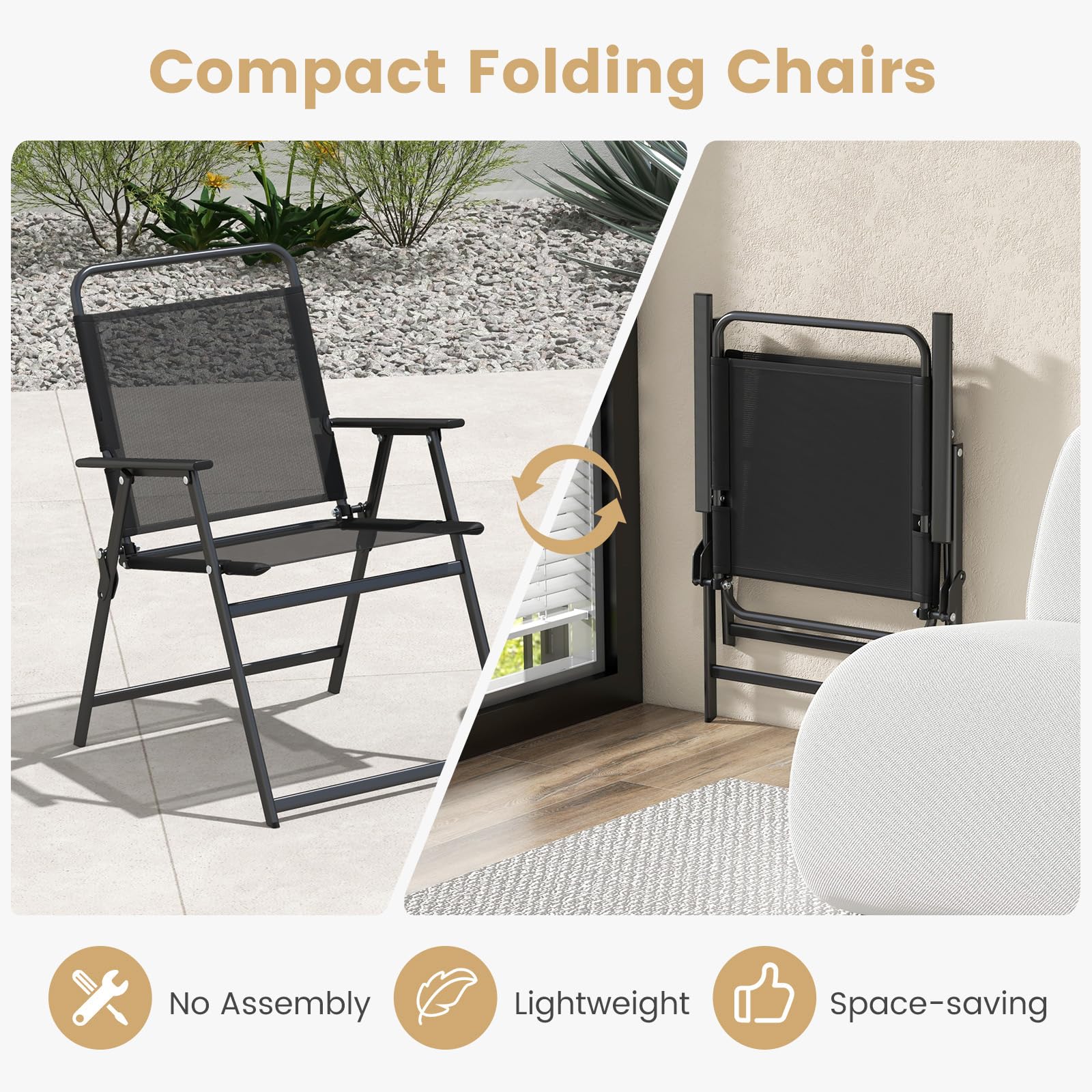 - [Compact Folding Chairs]: The outdoor chair requires no assembly. When not in use, it can be easily folded flat for space-saving storage. What's more, each folding chair is lightweight enough, which is convenient for you to carry from one place to another.