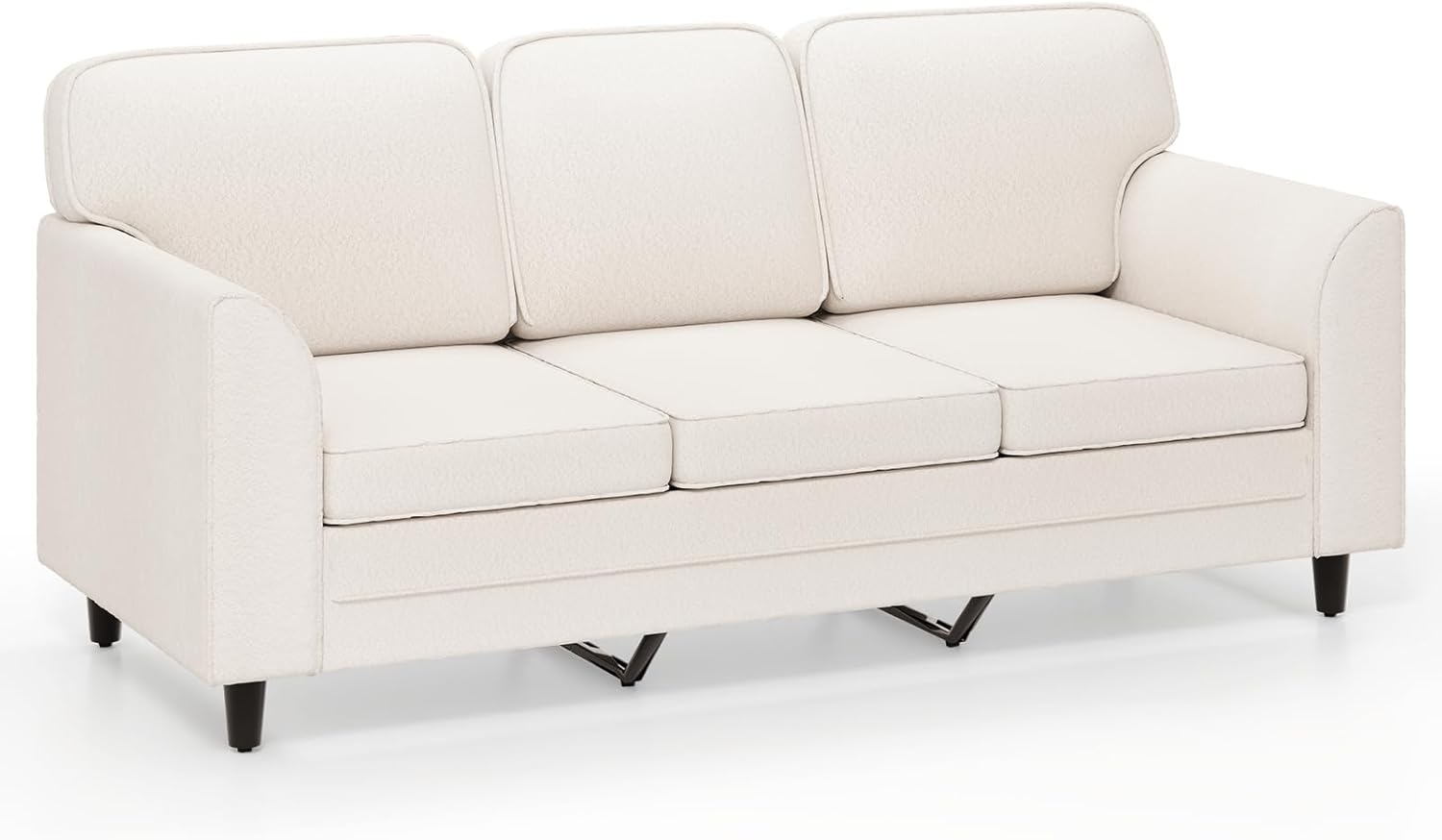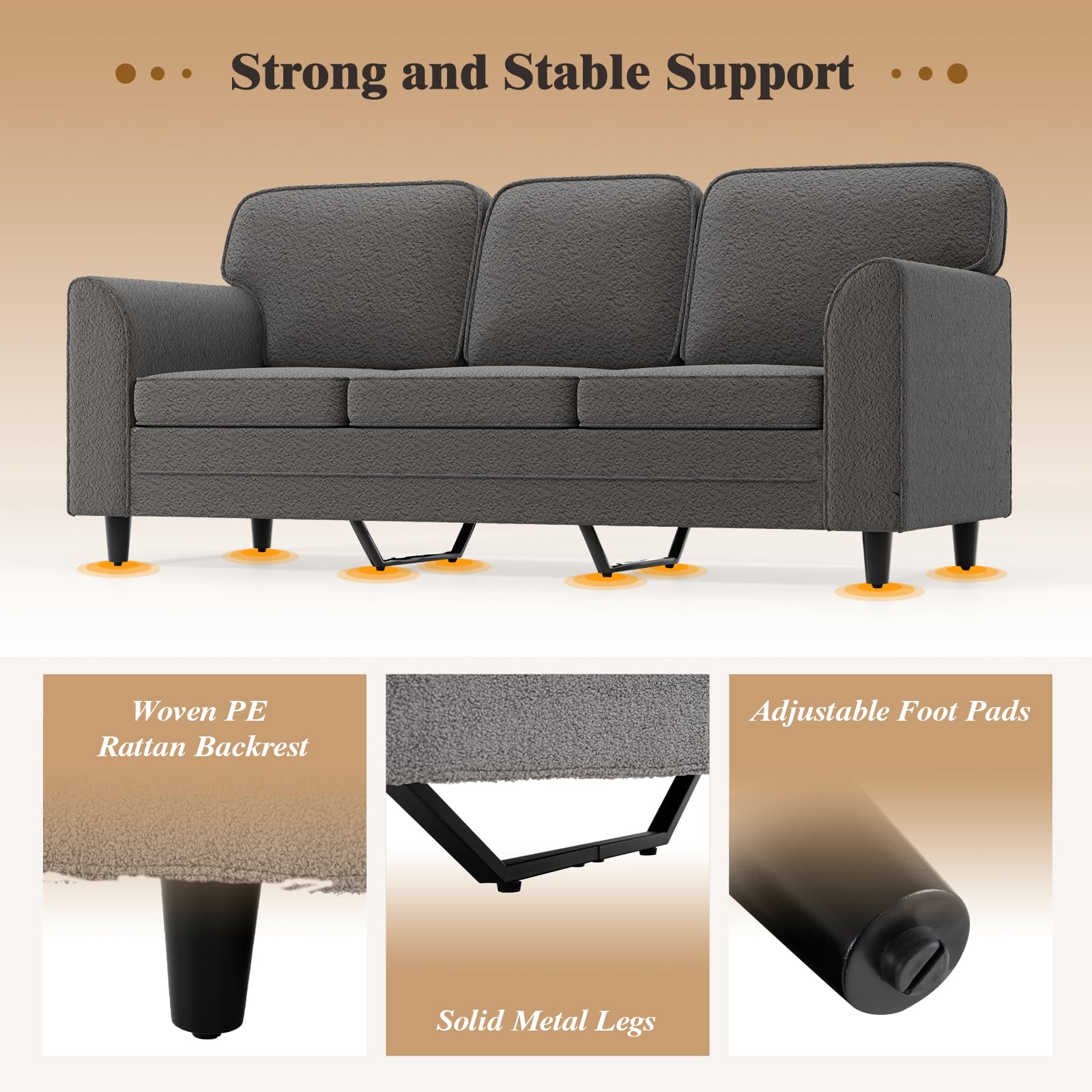 - [Comfortable Materials]: Covered with soft teddy velvet, the 3-seat sofa provides a skin-friendly and comfy touch. Moreover, the built-in S-shaped springs, high resilience sponge, and premium PP cotton bring long-lasting comfort.