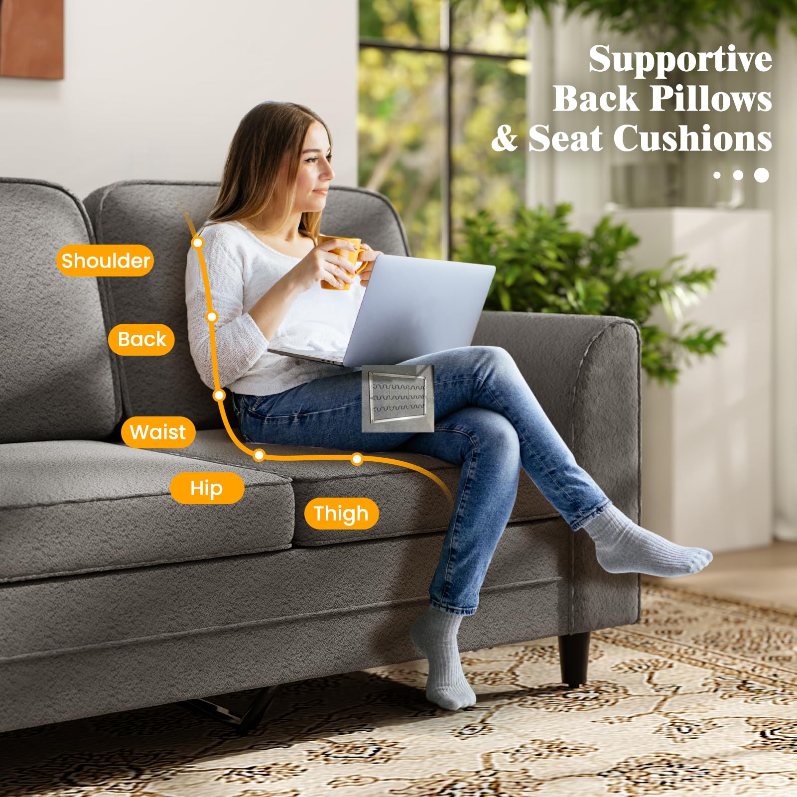 - [Extra Ergonomic Comfort]: Featuring supportive back pillows & seat cushions, the sofa offers ultimate comfort for your shoulder, back, waist, hip, and thigh to relieve your fatigue. The ergonomic armrests well support your hands and arms for further relaxation.