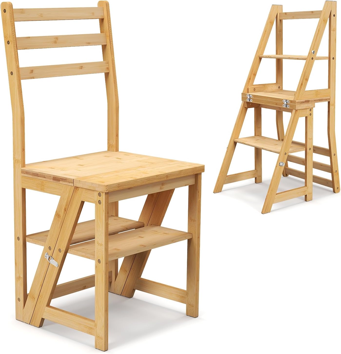- [Natural Bamboo Material]: Made from premium bamboo, this step stool chair combines sustainability with durability. The bamboo material boasts wear-resistant, anti-cracking and anti-fading features, ensuring a long-lasting addition to your home.