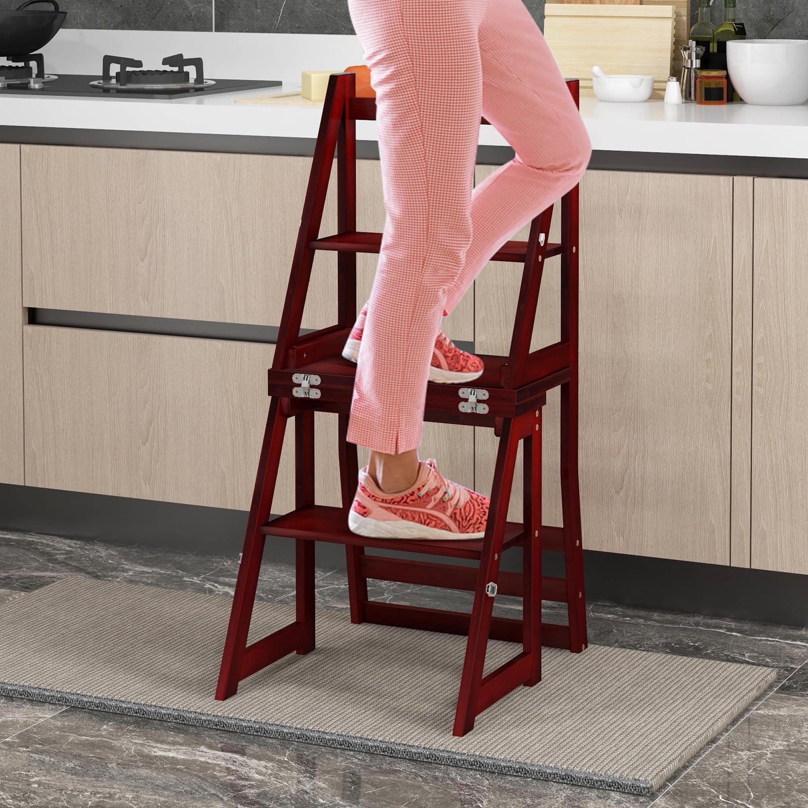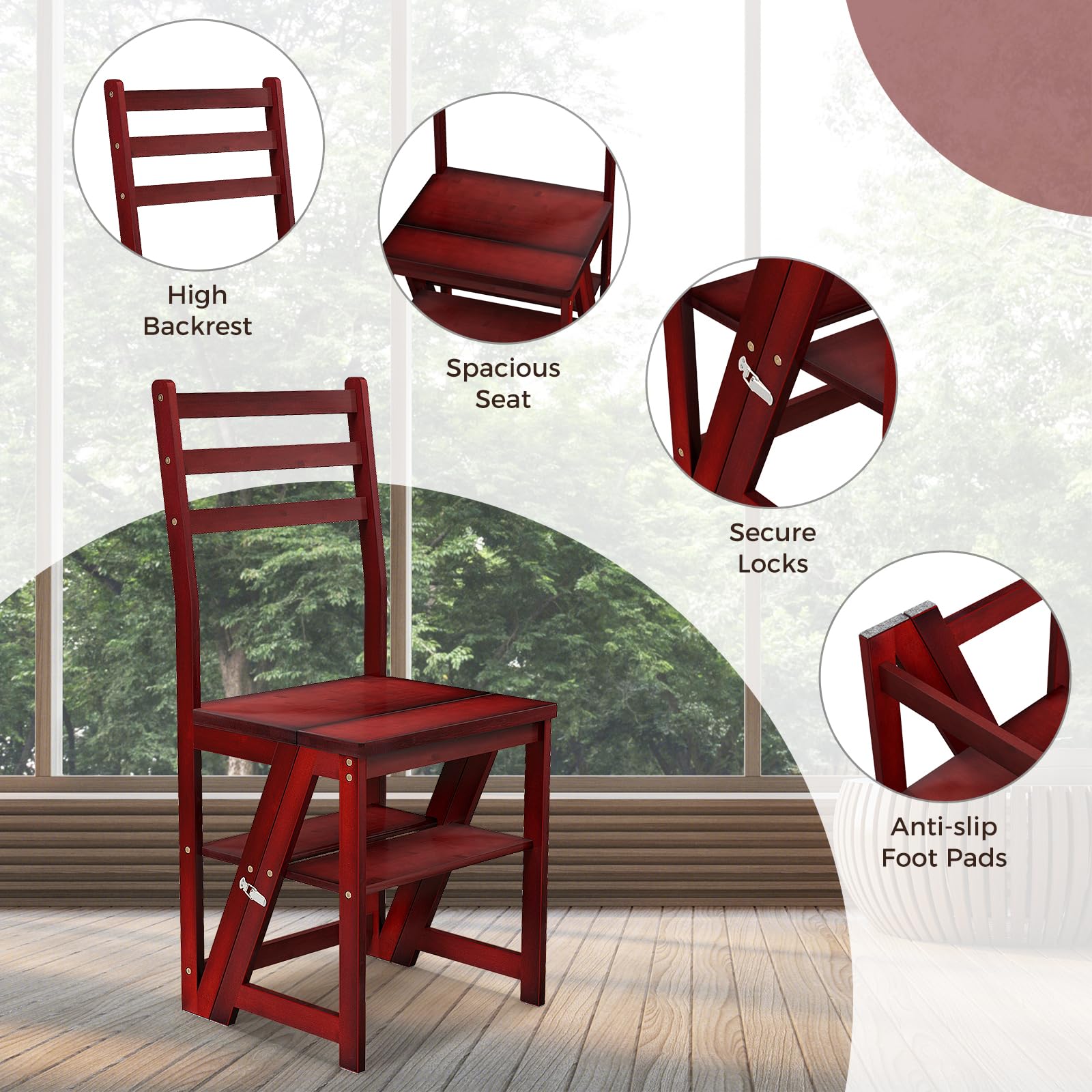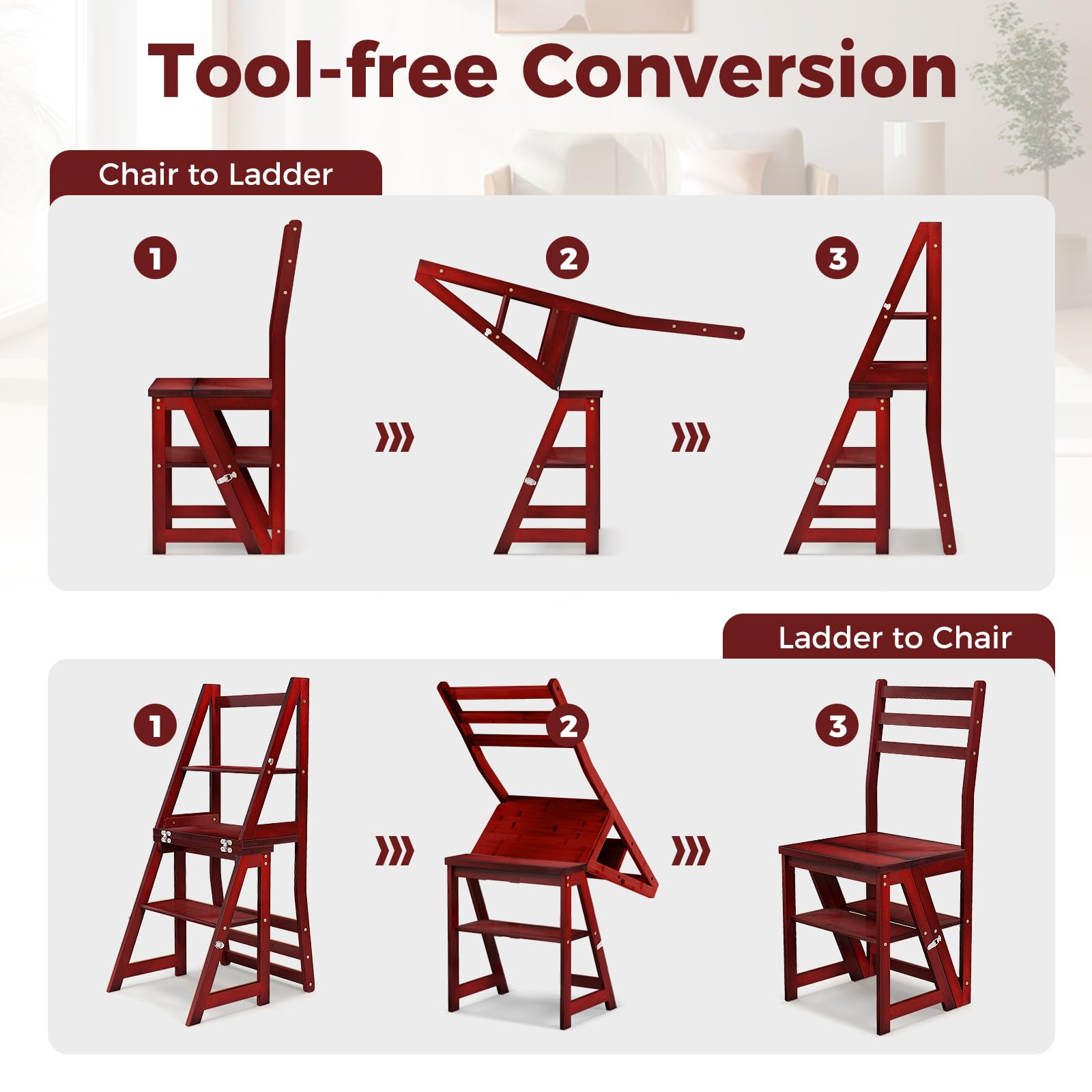 - [Tool-free Conversion]: Seamlessly transitioning from a high-back chair to a 4-step ladder, this folding ladder chair offers practicality and versatility, making it a perfect addition to kitchens, offices, libraries, and more.