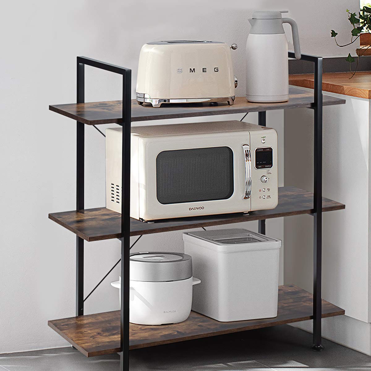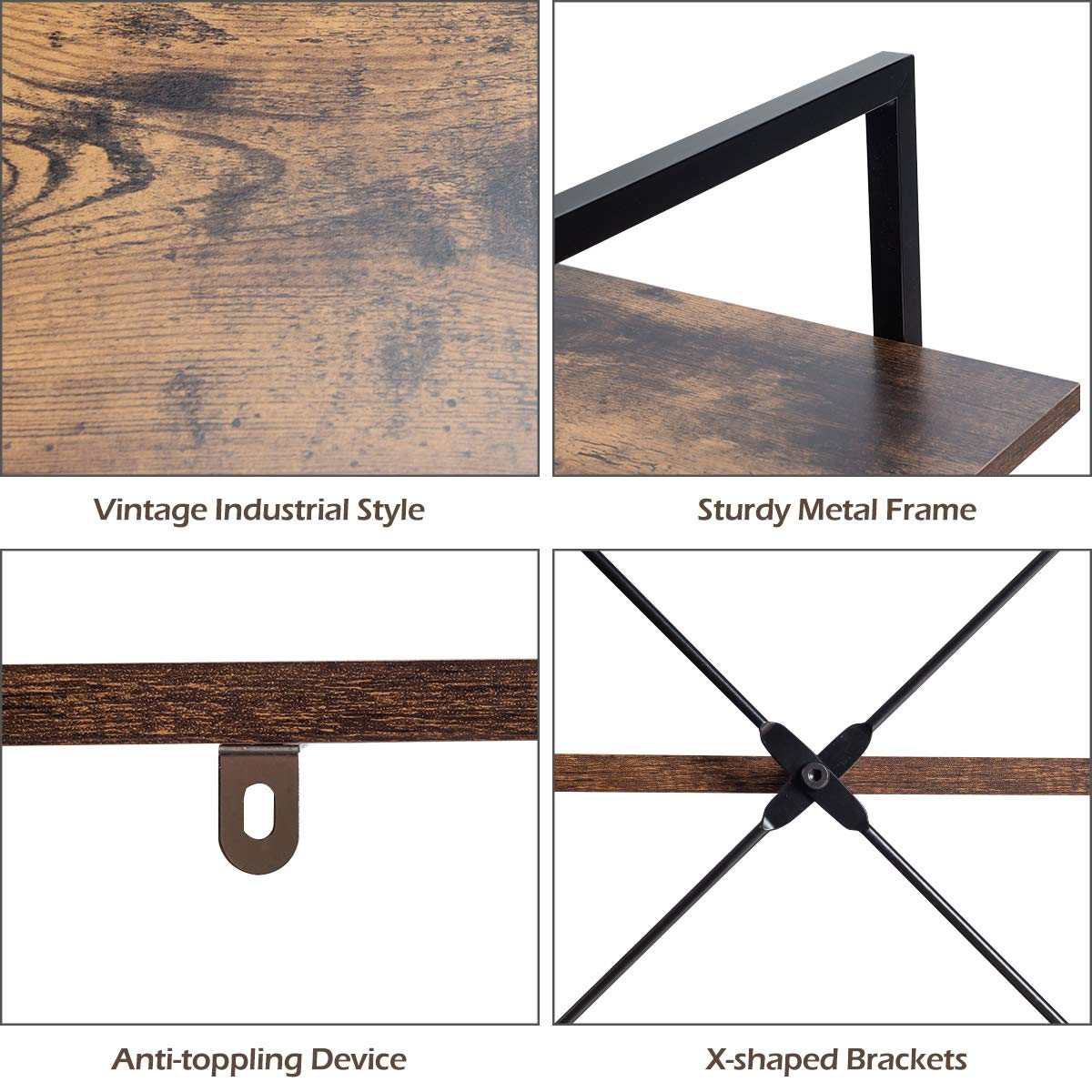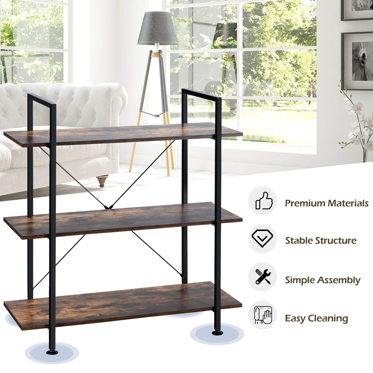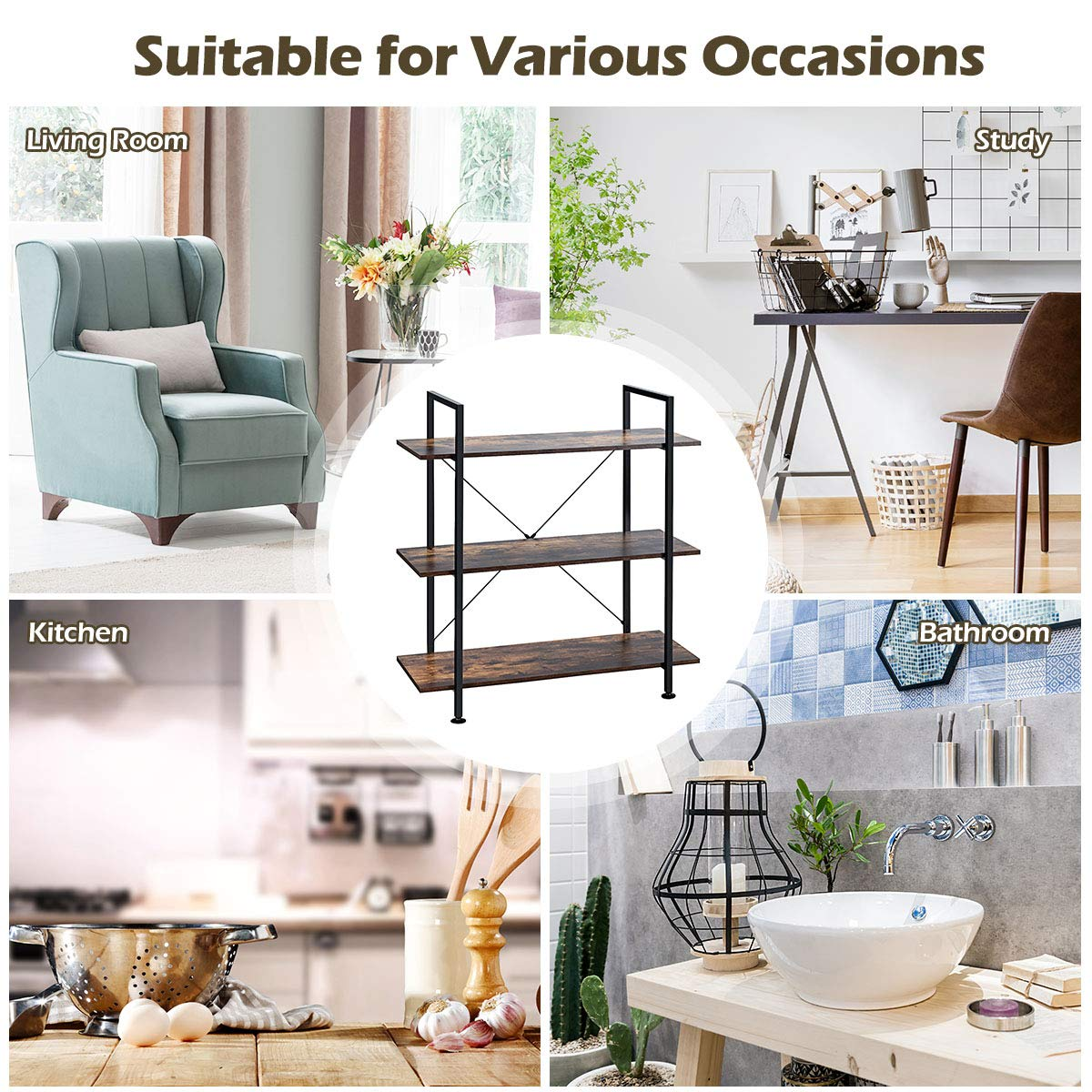 Made of high-quality particleboard and iron, our shelf is sturdy and durable. Reinforced with cross bars at the back and equipped with adjustable foot pads, the bookshelf has excellent stability. It is worth mentioning that, with an anti-tip device, this bookshelf can be firmly fixed to the wall to prevent falling over. Three-tier open book shelves provide ample storage space for books, potted plants, collectibles, etc. The attractive retro industrial design makes it a perfect complement to the living room, bedroom or study.