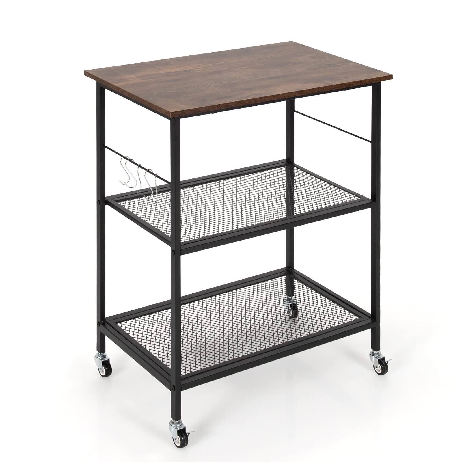 Giantex 3 Tier Kitchen Bake's Rack, Rolling Microwave Cart, Industrial Bar Service Cart