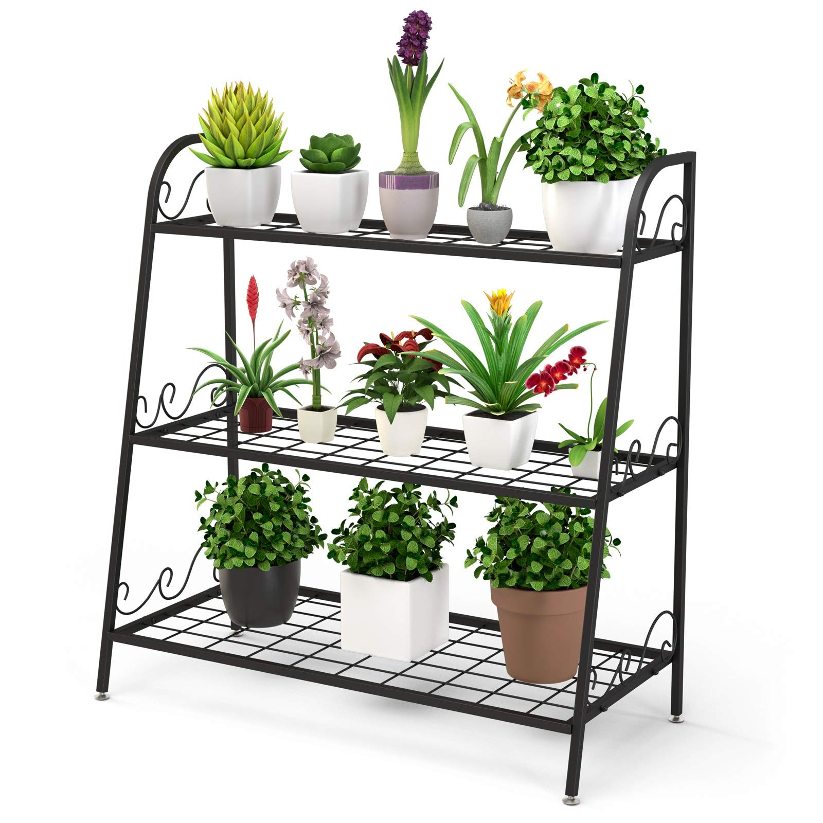 Space-Saving & Split-Level Design: This plant stand features 3 sturdy shelves that provide spacious space to store and classify a variety of sized flowers, which occupy limited floor space. Split-level layout makes your plants enjoy sunshine and will grow vigorously.
