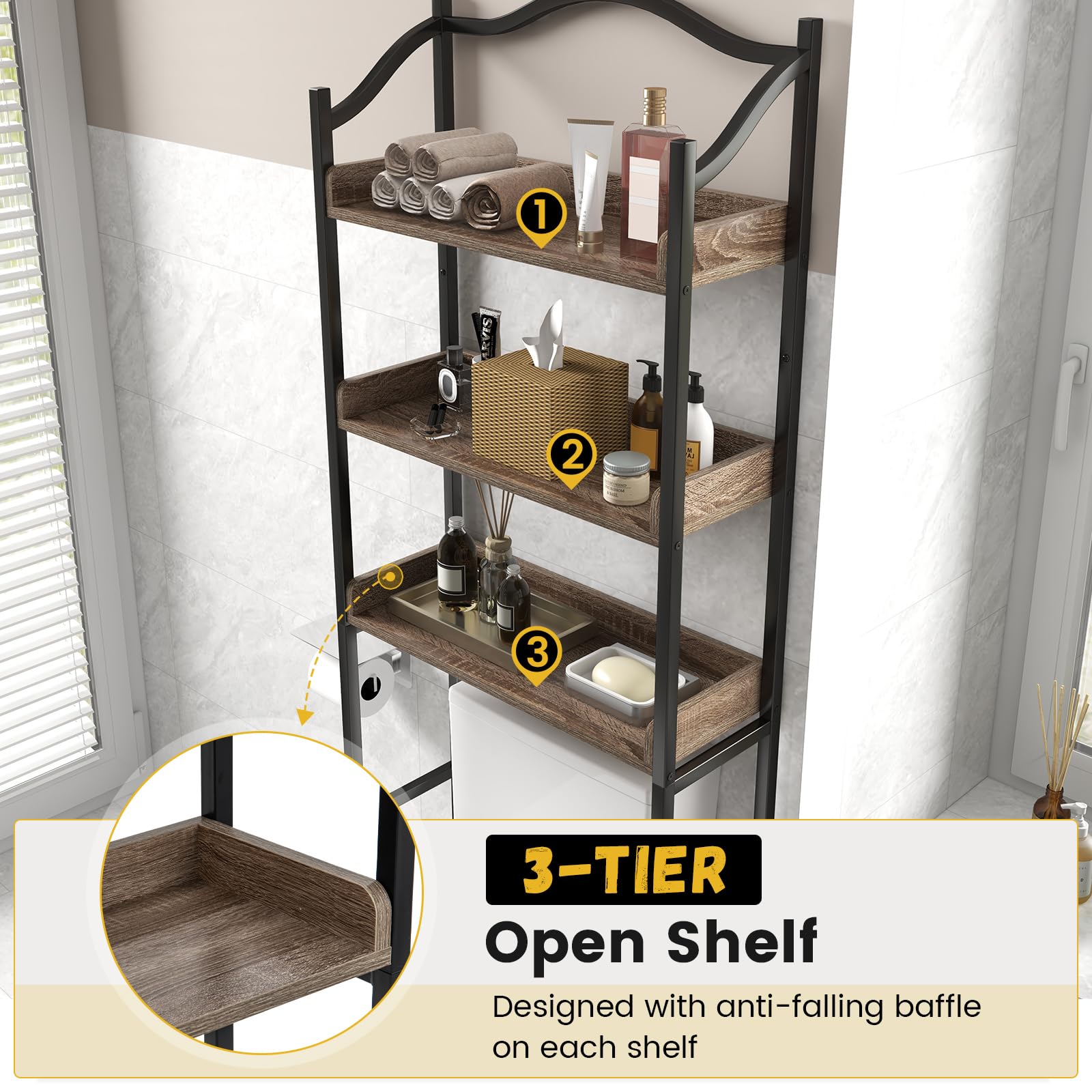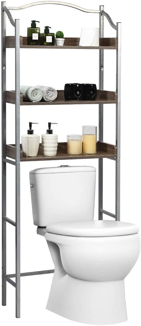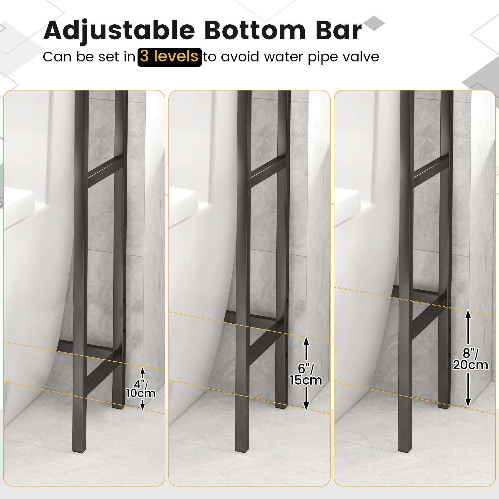 - Ample Storage Space & Adjustable Bottom Bar: Featuring 3-tier shelves with a high fence, this toilet rack provides a spacious storage room while ensuring that items are not easy to drop. Besides, the bottom bar can be adjusted, which allows you to assemble it just over the toilet no matter if there's a pipe in the back.