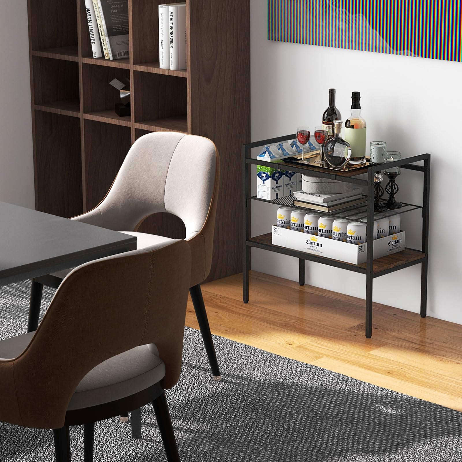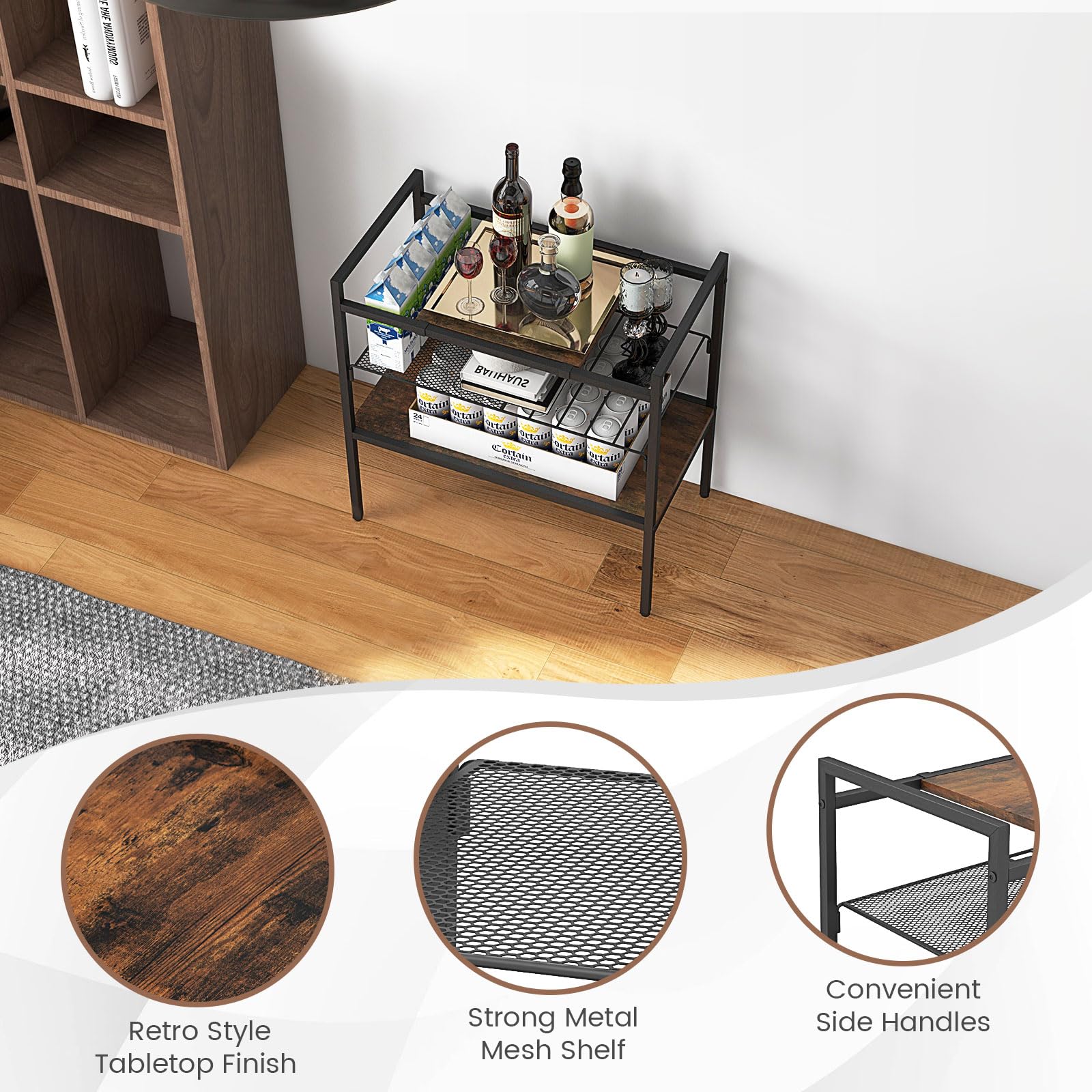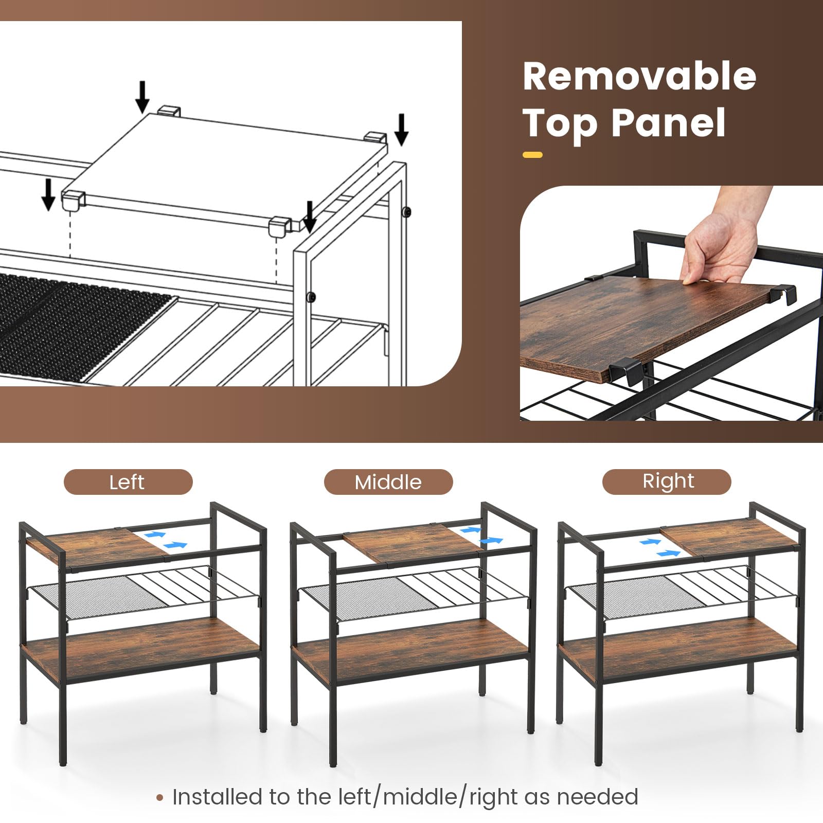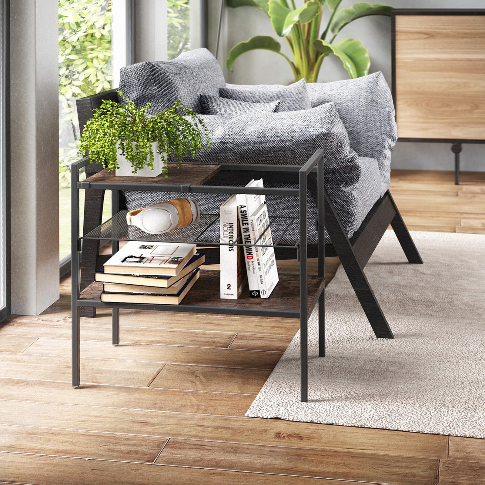 Add a touch of retro and industrial beauty to your entryway, hallway, living room or anywhere else. Supported by a heavy-duty powder-coated metal frame, this entryway table offers superior stability and durability for long-term use. The removable top panel with hanging hooks can be installed to the leftmost/middle/rightmost as needed. The middle strong metal mesh shelf is also detachable for a flexible storage of different sized items. Besides, the spacious open bottom shelf provides more storage space. This side table is specially designed for better storage of household items, and works well as an entryway table, a kitchen island or a foyer table, making a stunning addition to your home decor.