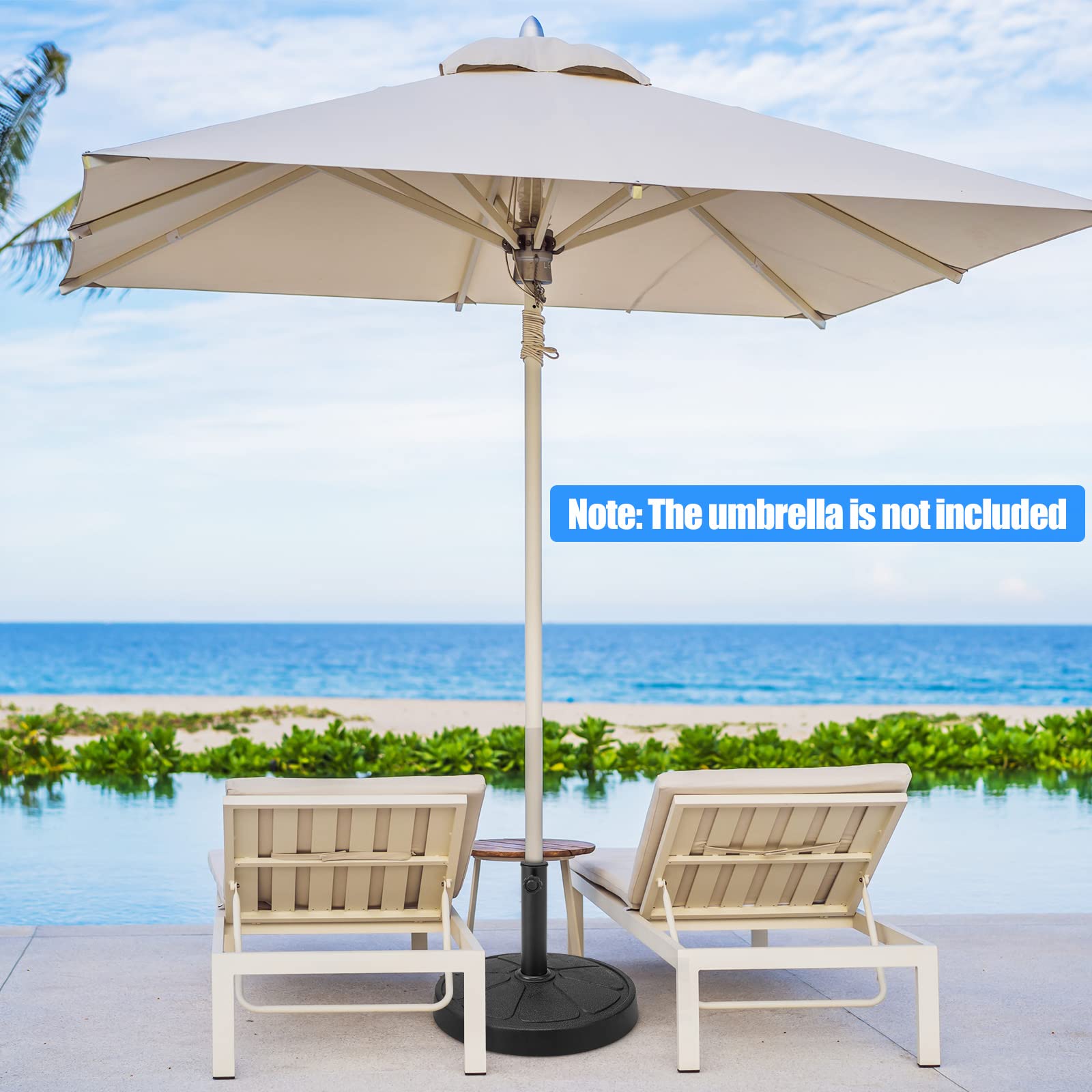 Keep your market umbrella stable and secure with our stylish resin umbrella base. Crafted from high-quality resin and steel, this umbrella stand is built to last through all kinds of weather, boasting durability, weather resistance, and rust resistance for extended use. With two adjustable adapters, it easily accommodates most market umbrellas with pole diameters of 1.5''-1.9''. With its sleek and contemporary design, it perfectly complements a wide range of outdoor decor styles, blending seamlessly with any setting.
