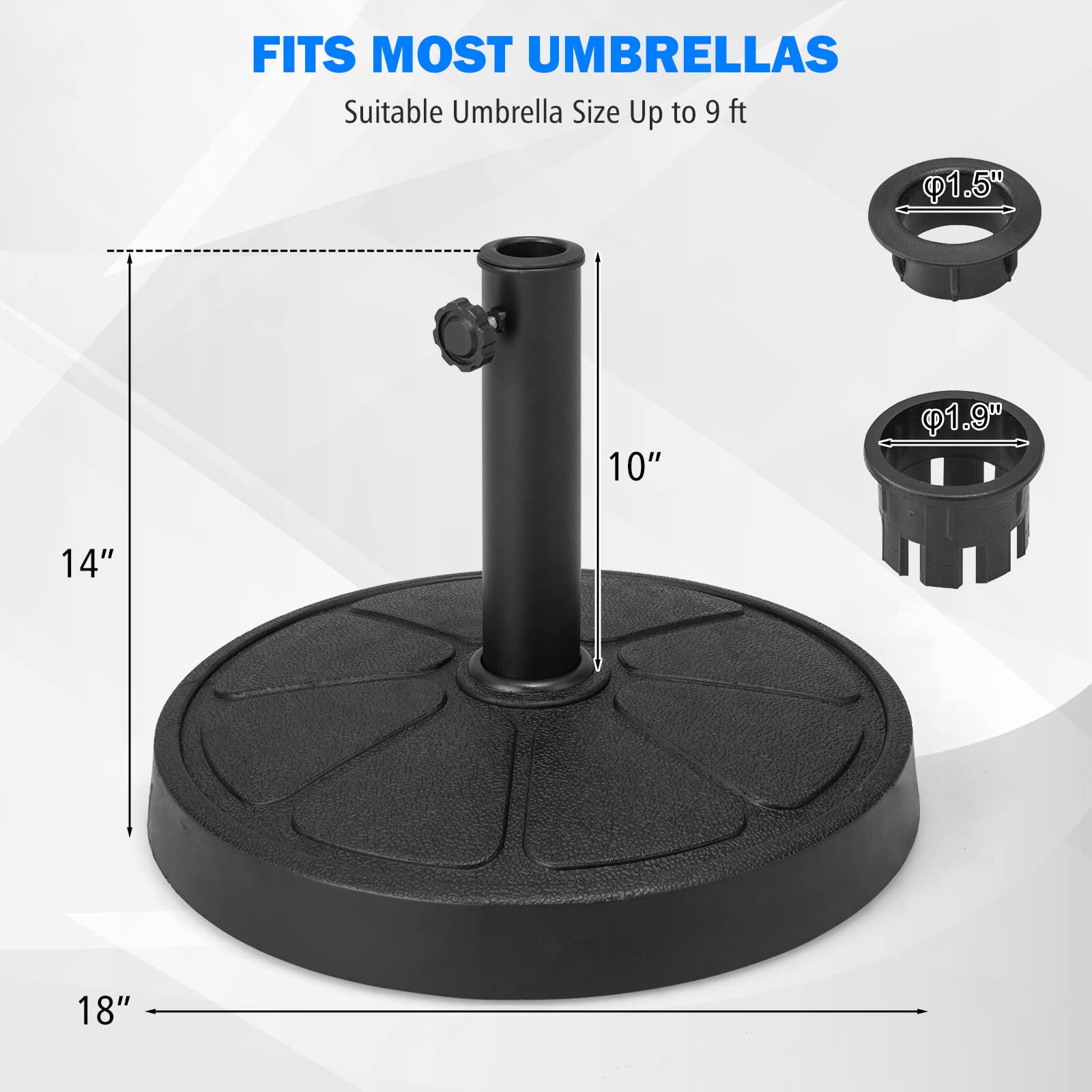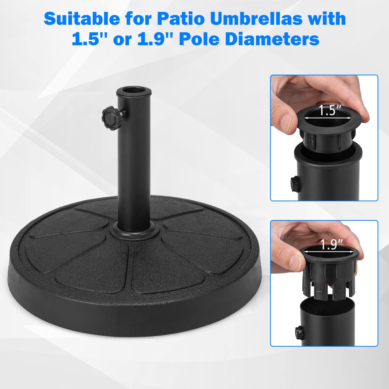 Fits patio umbrellas with 1.5''-1.9'' pole diameter