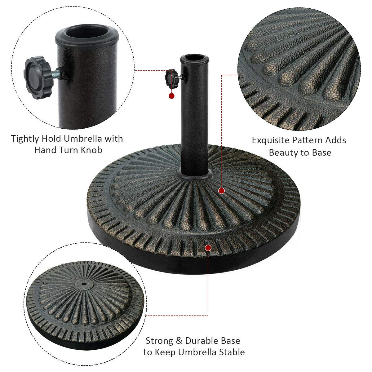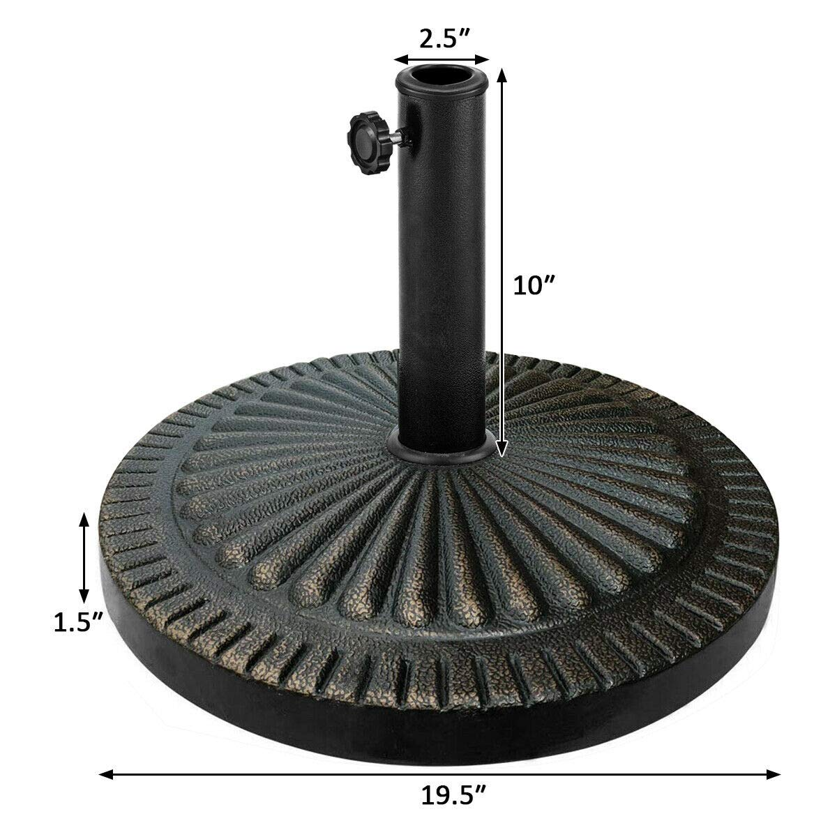 Product form Giantex 31.5 lbs Patio Market Umbrella Base, Heavy Duty Cast Iron Resin Outdoor Stand $69.99 Shipped today? Order within: Oct 05, 2025 17:00:00 -0700 Quantity Add to cart This item is a recurring or deferred purchase. By continuing, I agree to the cancellation policy and authorize you to charge my payment method at the prices, frequency and dates listed on this page until my order is fulfilled or I cancel, if permitted. Your order will be shipped for free!