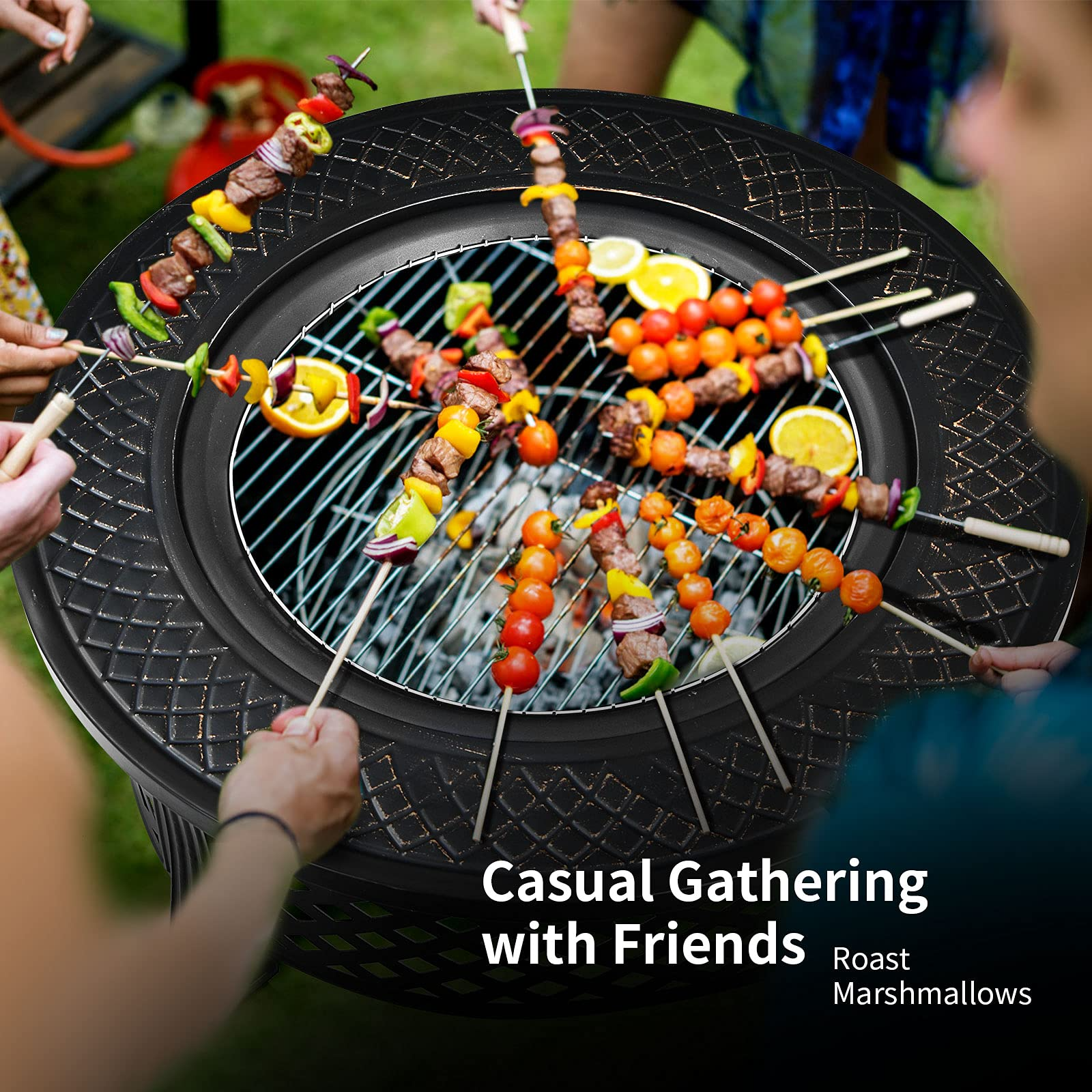Our 32" round burning fire pit with simple style can match perfectly with any outdoor spaces. This versatile fire pit can be used as a brazier or barbecue grill, which allows you to enjoy the cozy fire on a cool night with your family and friends. And the large fire bowl can be filled with ice and used as a cooler during the hot summers. It is worth mentioning that the heavy-duty frame with high-temp resistance finish ensures long-lasting use, and there is a poker and a mesh cover for safety use. All the hardware and detailed instruction are included, so that you can complete the installation in a short time. Besides, the portable rain cover makes it easy for you to store the fire pit when not in use.